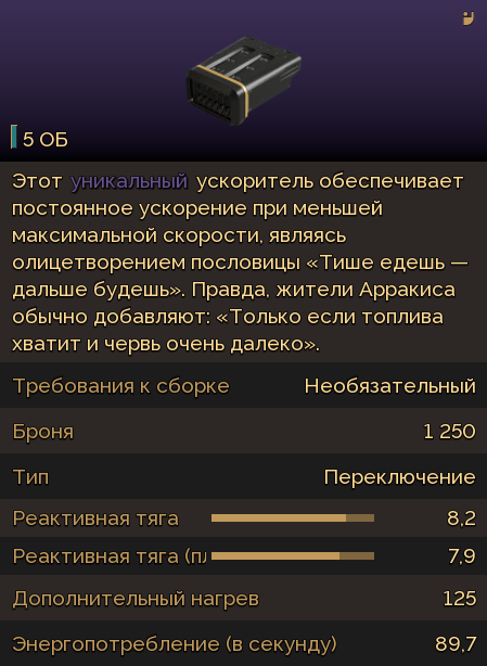 >>50155267 Предположу что это чудо будет скоростное для гонок о которых разработчики говорили. Если можно будет обгонять червя, то будет полезная штука для езды по ДД вдвоём.