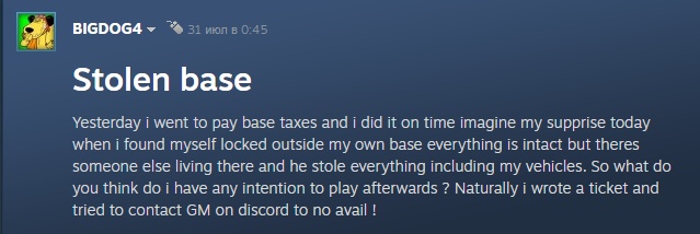 Бамп мертвого треда мертвой игры вопросами Не заходил почти месяц, все внешние стены базы разрушились, кое-как вспомнил как делать пентащит. Прочитал все посты, я же правильно понимаю что никто ничо не мог украсть, раз феод стоит? А то я уж хотел спрашивать за логи лутания вещей, которых, очевидно, в этой игре нет в природе. Гильда с виду умерла, я так понимаю в дискорде искать новую? И если куда-то на новый сервер переходить, это всё с нуля? Ландсраад этот ваш, мне показалось это что-то для гильдий, нет? Типа кто быстрее налутает и принесёт нужное к определённому нпц в определённом месте получает лицензию на что-то? Звучит как гонки с еще большими аутистами чем я сам