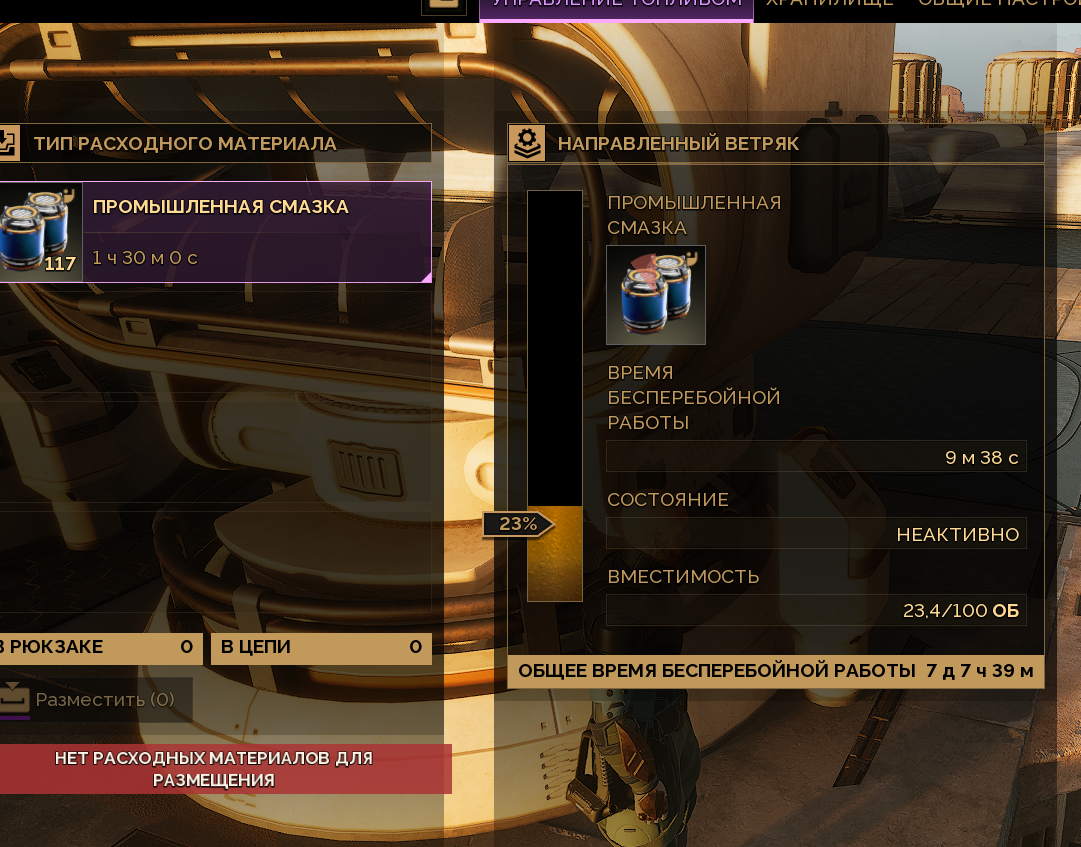 >>50164566 Направленная воздушная турбина 30 дней. >И что у меня на базе жрет энергию не пойму Сама база пассивно жрет энергию на щит от шторма (который выключается когда топливо заканчивается), расход энергии зависит от размера базы, чем больше ты расширил, тем больше жрет. Пентащиты жрут энергию когда активны.