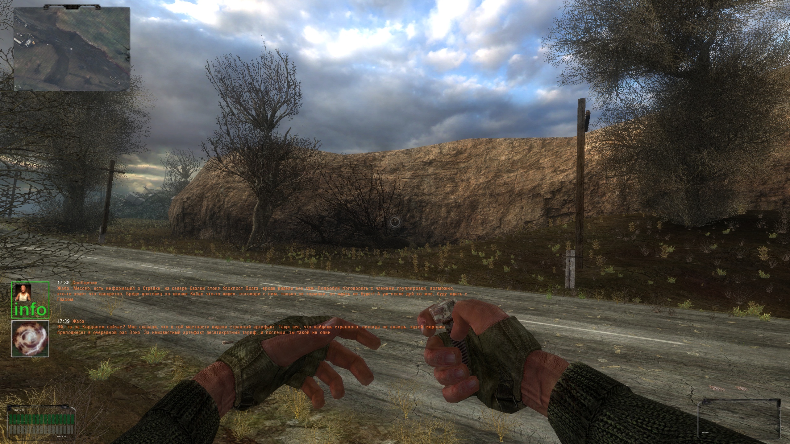 21:28 Дима Гриб На Свалке, что северо-западнее Депо, увидел сумасшедшего сталкера. Тот дергался, стрелял во все стороны и громко кричал, что хочет стать объебосом. Видать излучения хапнул, бедняга. Обходите стороной.