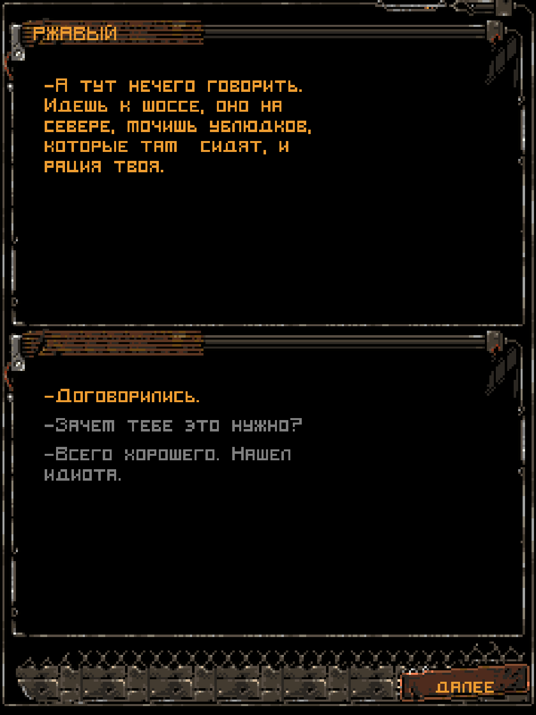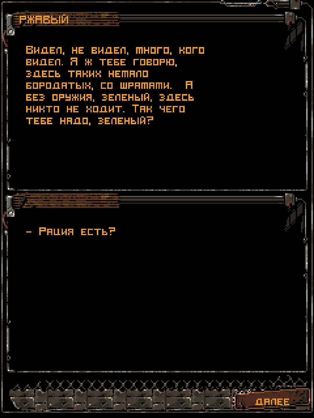 После первого квеста Ржавый заартачится. Можно его припугнуть, а можно затерпеть, но зато получить доступ к лорным подземельям Кордона. Кстати, у меня этот момент забаговался - можно сначала получить рацию, а потом все равно заглянуть в подземку