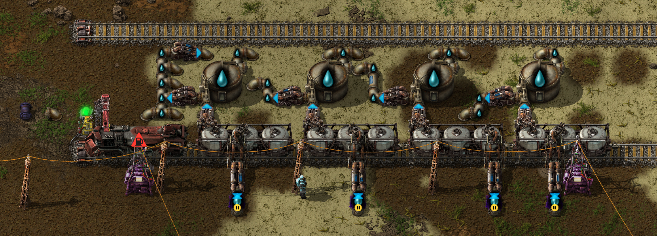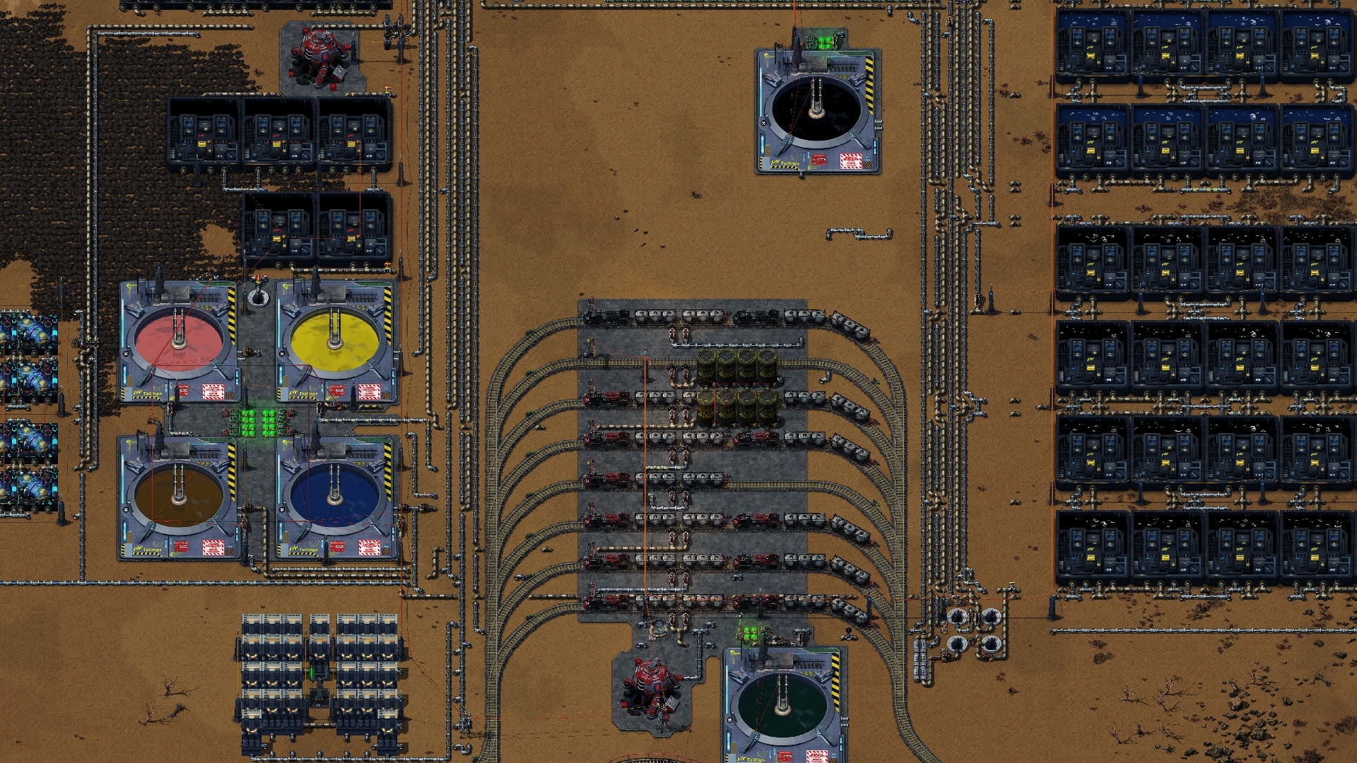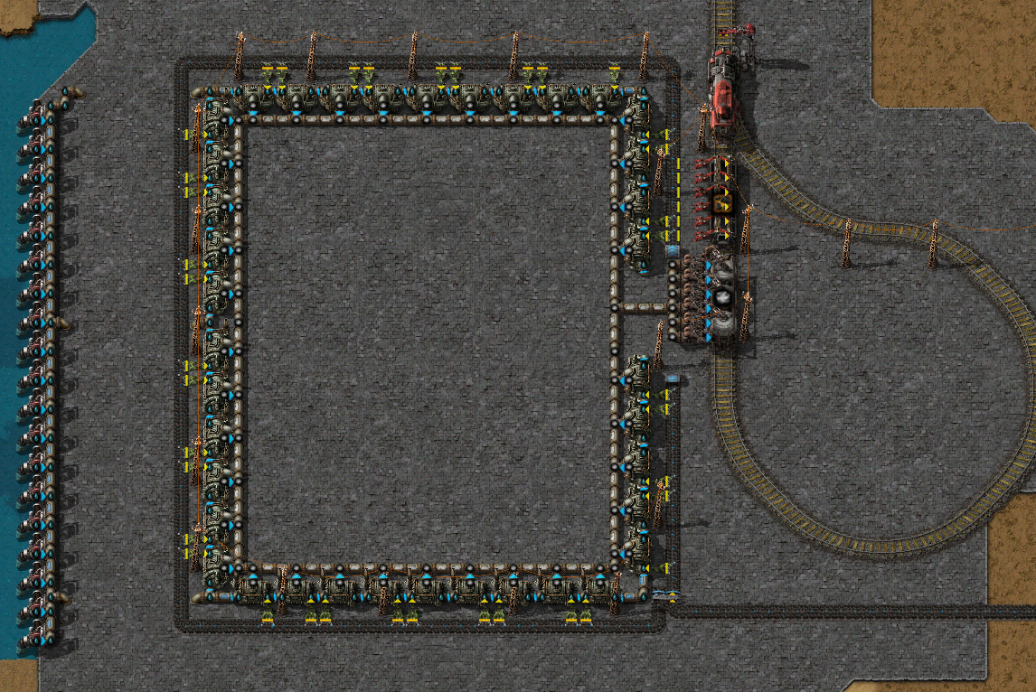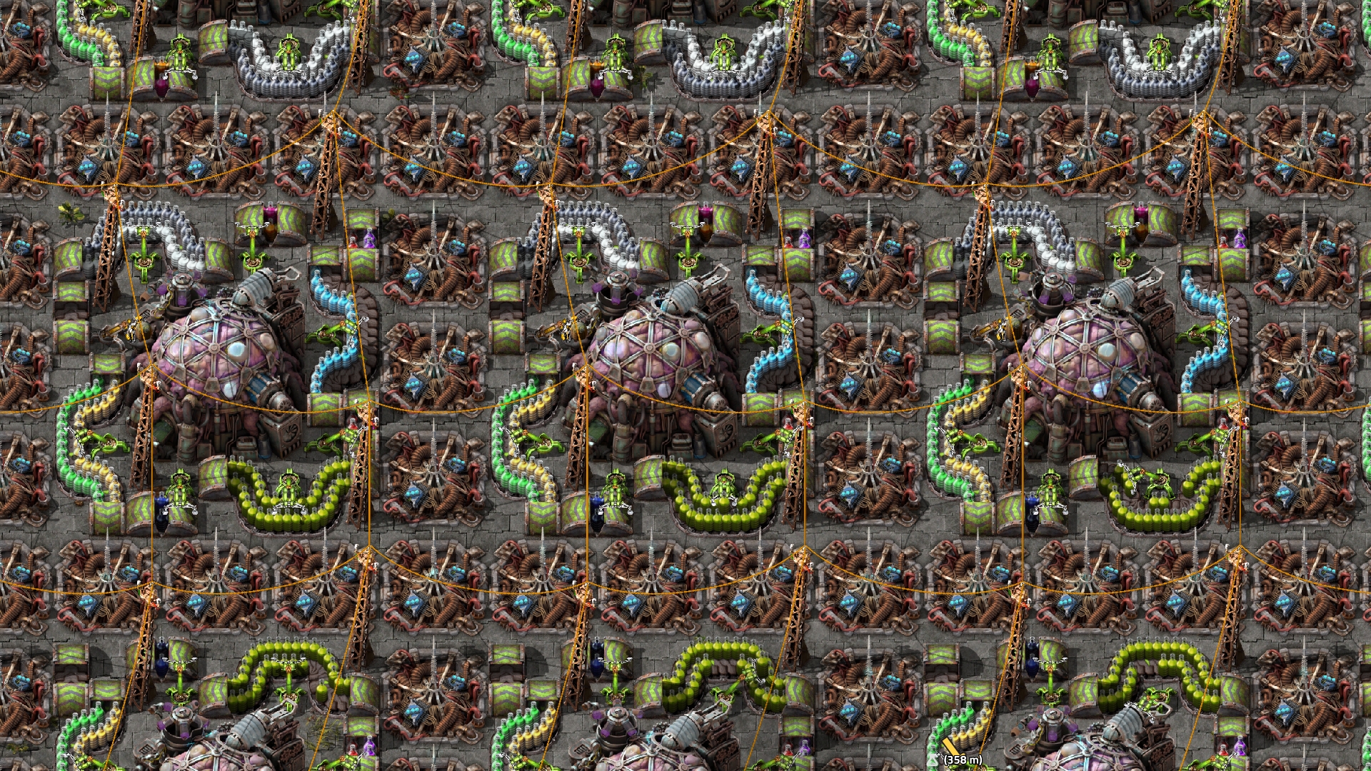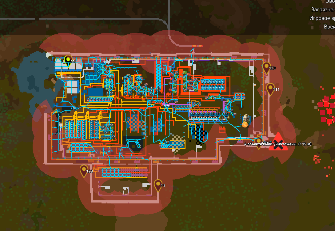 >>50286539 Это была попытка в централизованную переработку всех нефтегазопродуктов в пу. Идея была не то чтоб плохой и довольно элегантной (соединил всё в одну схему и знай настраивай приоритеты и правила), но в итоге упёрлась в совершенно безумный потенциальный размер инсталляции, вызывающий проблемы с масштиабированием и дикий траффик вокруг неё, так что в итоге пришлось это дело разнести по углам карты, к месторождениям. А хуёвину потихоньку демонтирую, хотя она мне пока ещё топливо делает. Потому что так красивее.