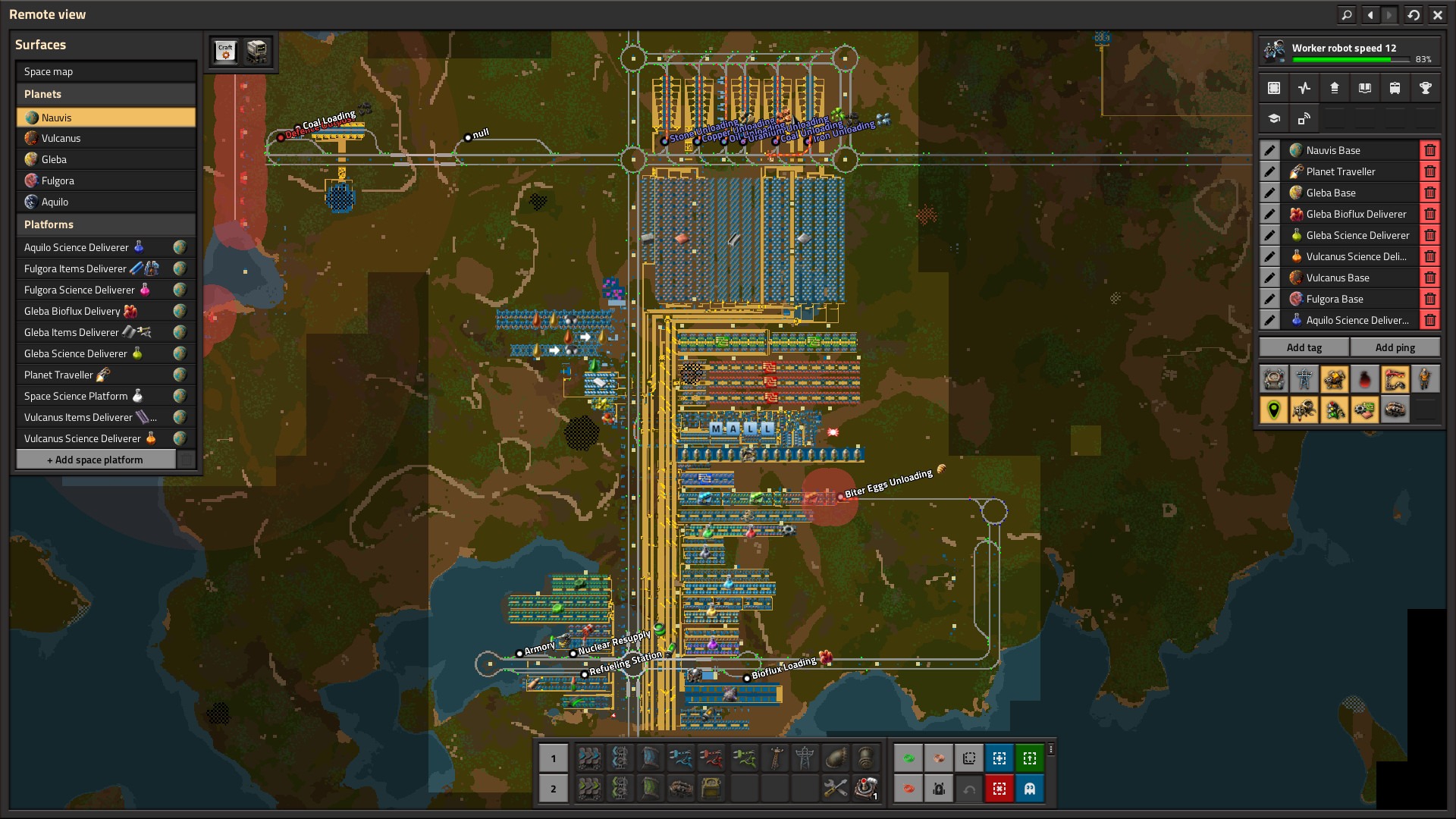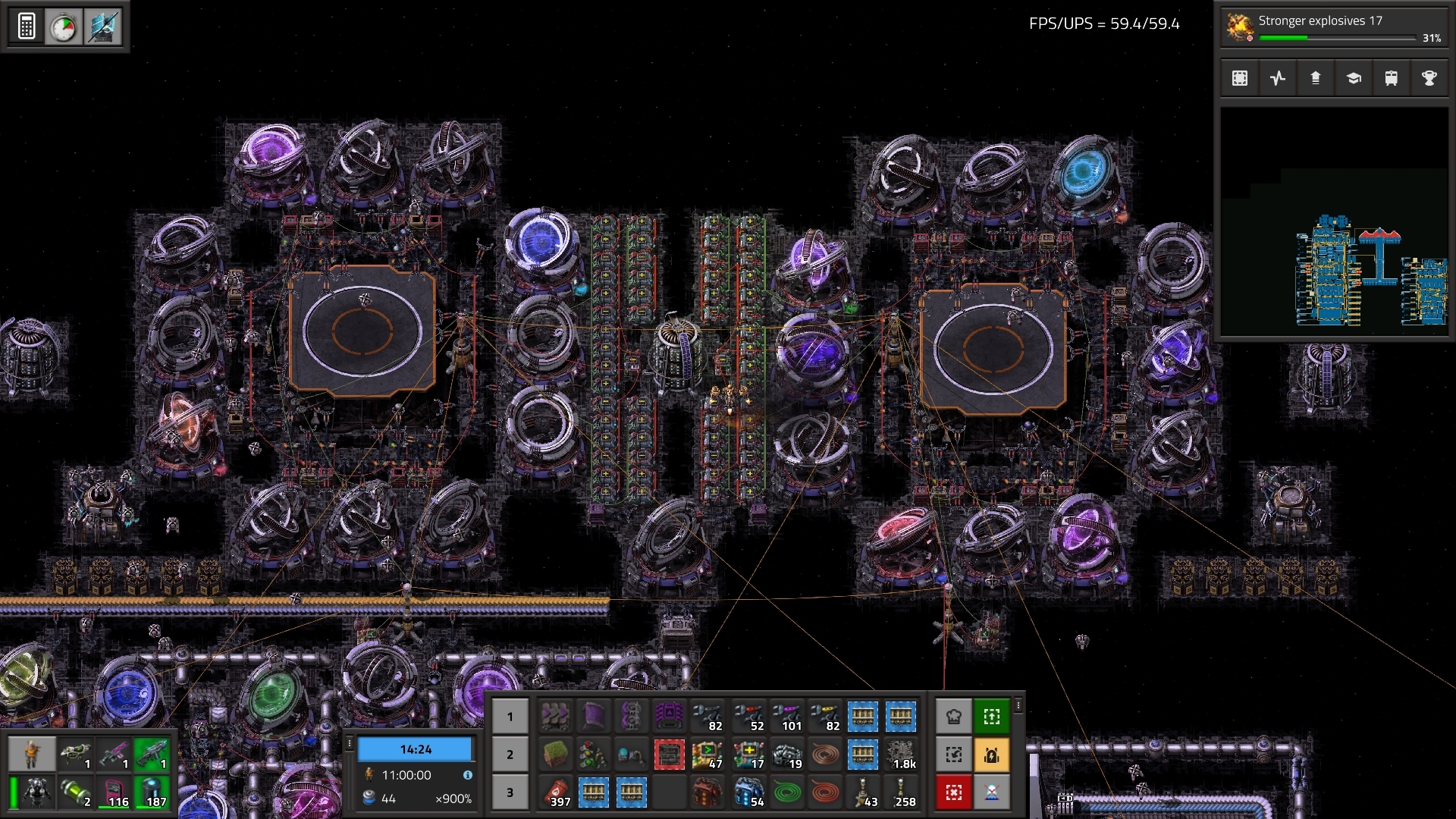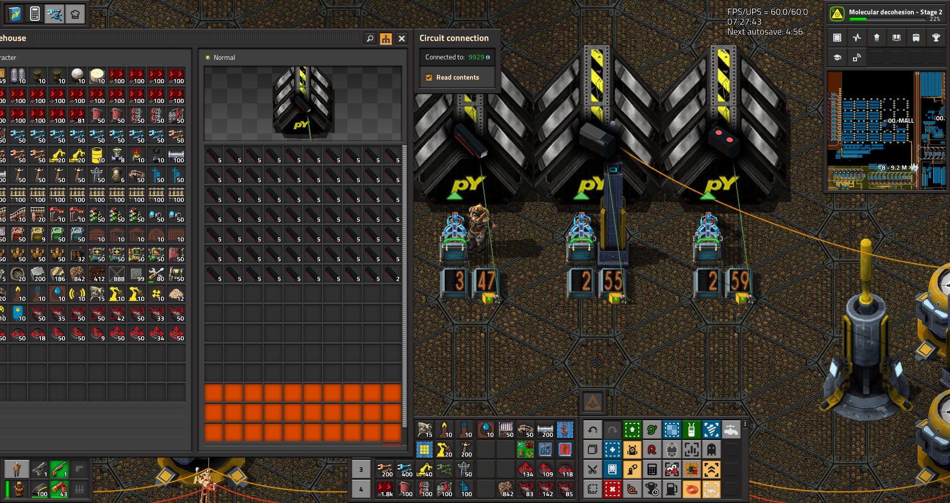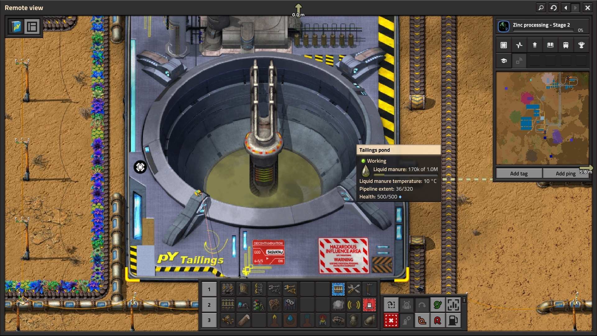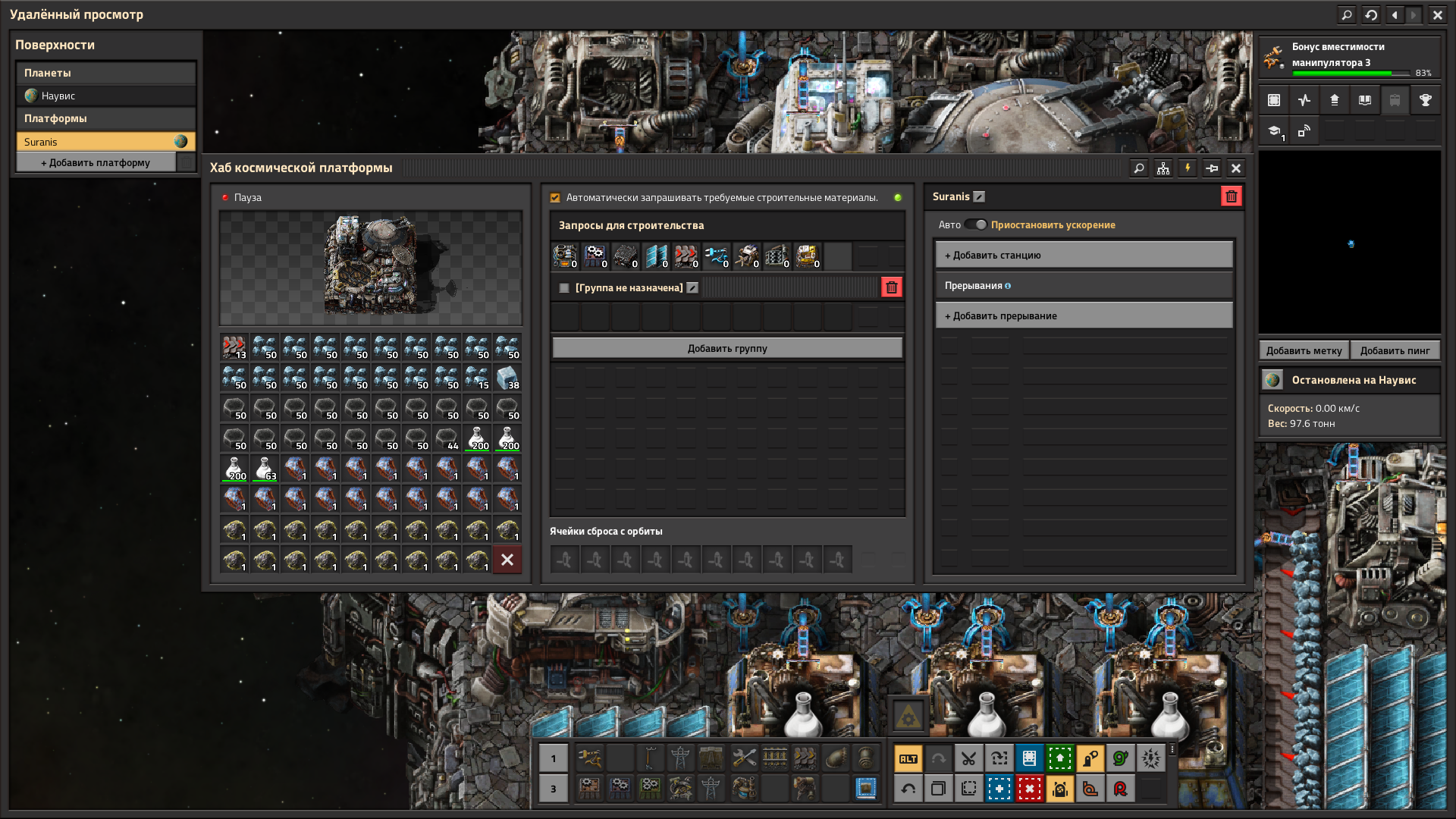 >>50286539 Это была попытка в централизованную переработку всех нефтегазопродуктов в пу. Идея была не то чтоб плохой и довольно элегантной (соединил всё в одну схему и знай настраивай приоритеты и правила), но в итоге упёрлась в совершенно безумный потенциальный размер инсталляции, вызывающий проблемы с масштиабированием и дикий траффик вокруг неё, так что в итоге пришлось это дело разнести по углам карты, к месторождениям. А хуёвину потихоньку демонтирую, хотя она мне пока ещё топливо делает. Потому что так красивее.