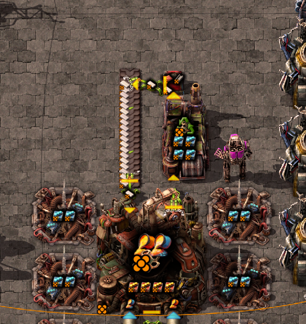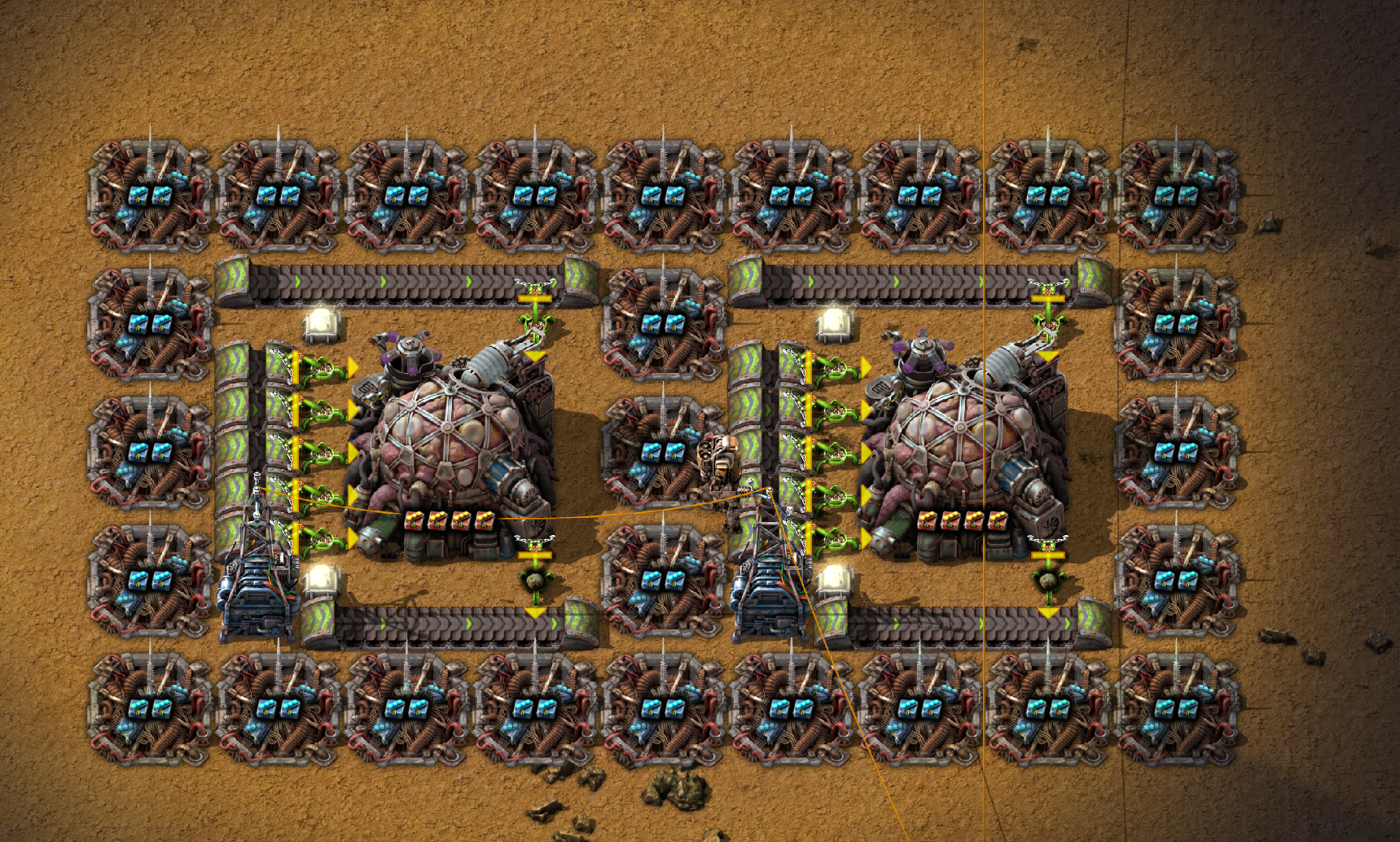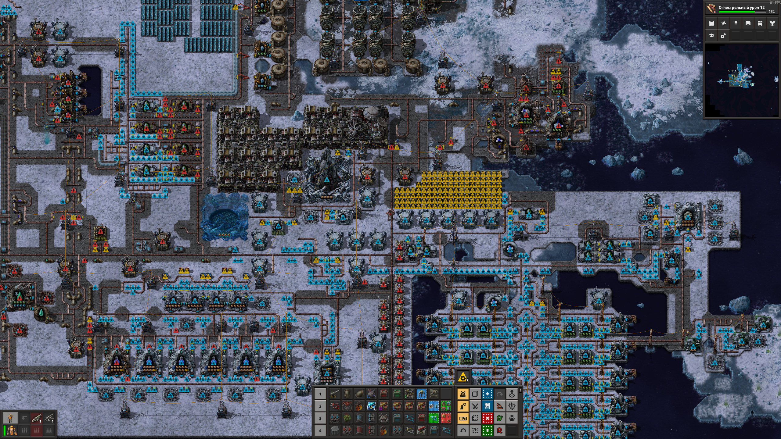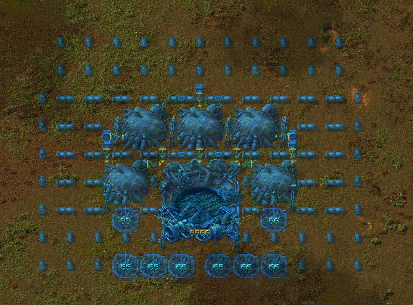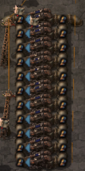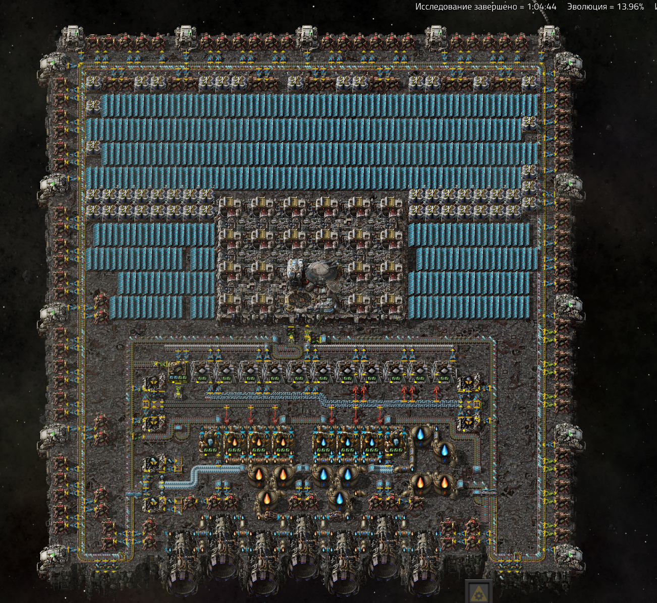 >>50276023 играю примерное по твоему принципу, (с учетом того что я ещё ничего не сжигаю, сливаю только грязный ил), база на синих+ банках работает, (поезда в основном пластины возят (скоро от этого откажусь, открыта плавка всех металлических деталей типо болтов, прутьев и тд из жидкого металла, буду трубами доставлять а возить поездами боракс и литейные подложки), дерево, мох куда нужно, некоторые растения, кокс банки на белтах, на дронах мини-молл работает, боеприпасы по периметру (арт.снаряды и патроны в турели), и редкие компоненты типо мк2 плат, всякие нейроматрицы и тд, т.е. те которые делаются в небольших количествах. База уже настолько плотная, что думаю надо сделать сбоку от неё жидкостную шину (как раз сейчас пластины не нужны будут во все места, мелочевка вся будет делаться из жижи). Но с жуками тяжеловато воюется (танк + дроны vs 70 эволюции)