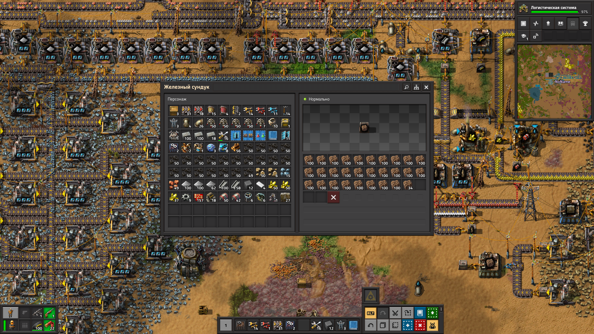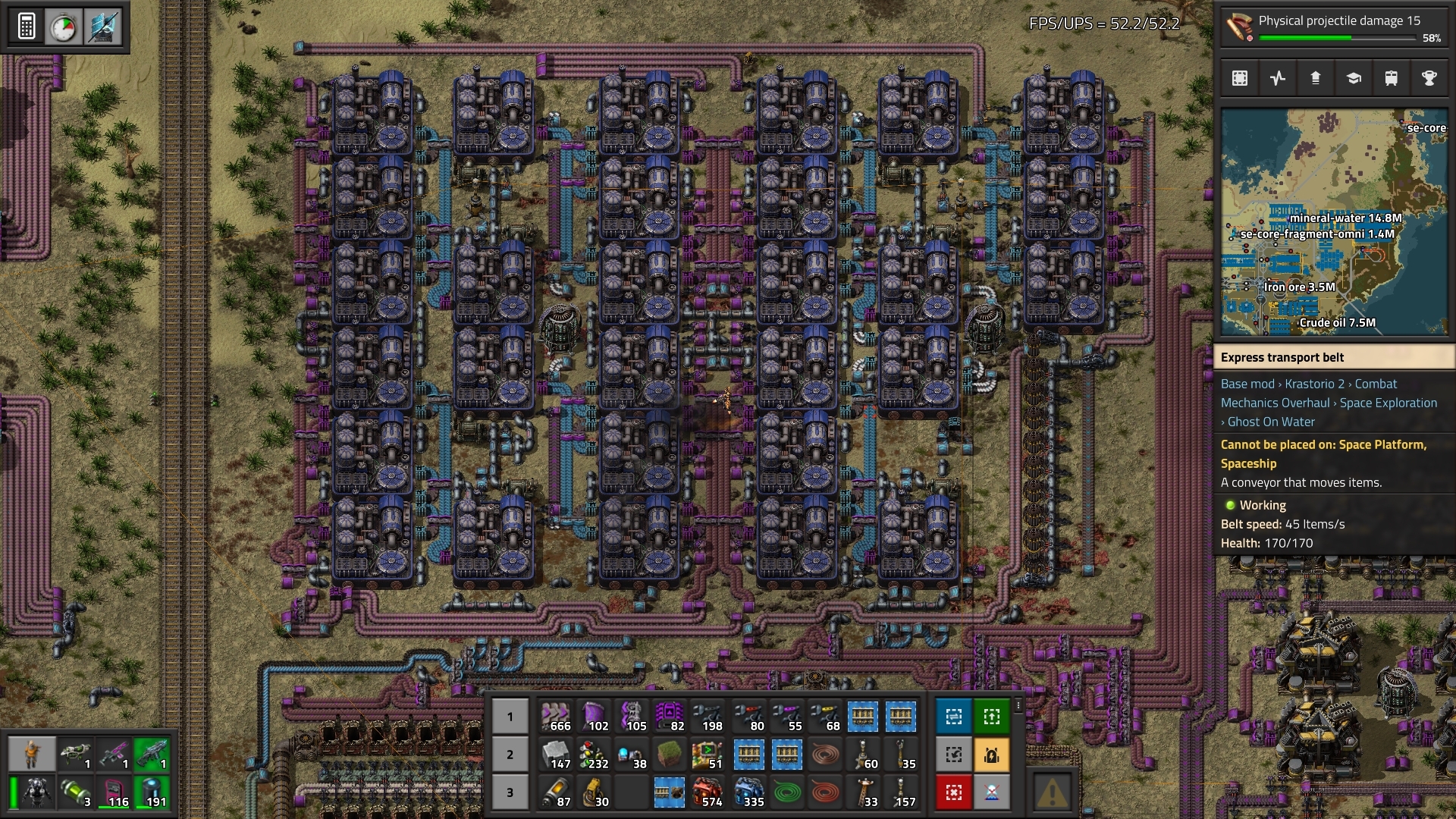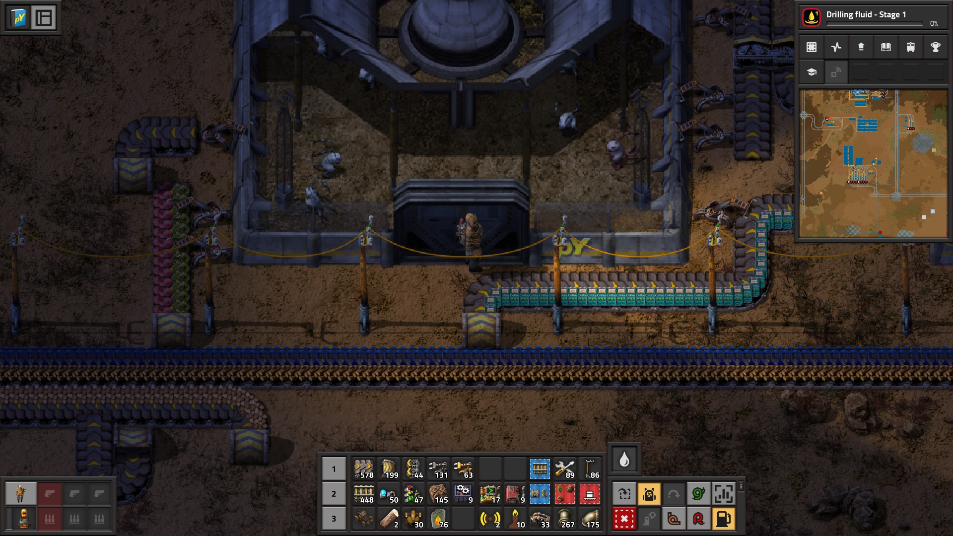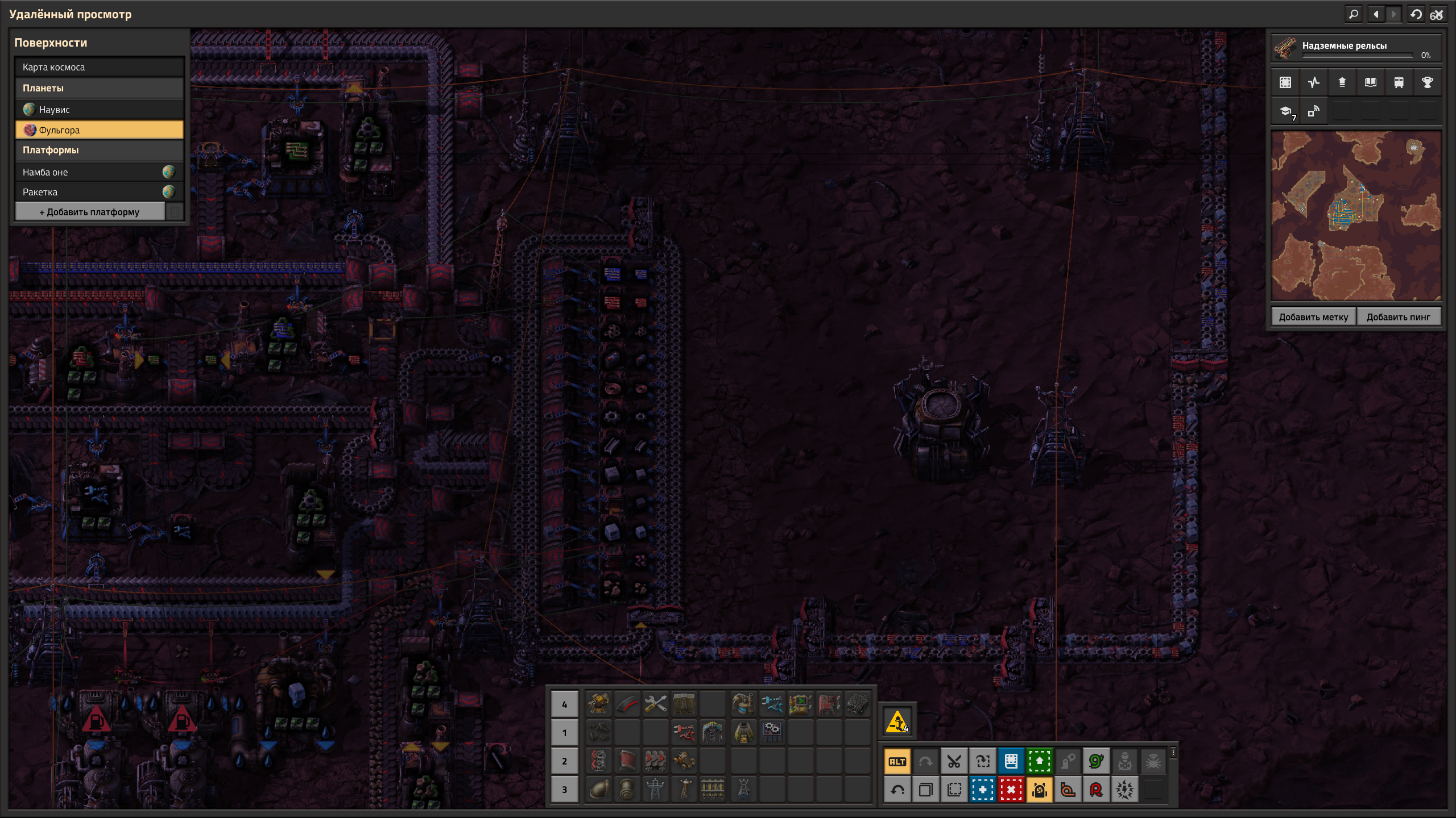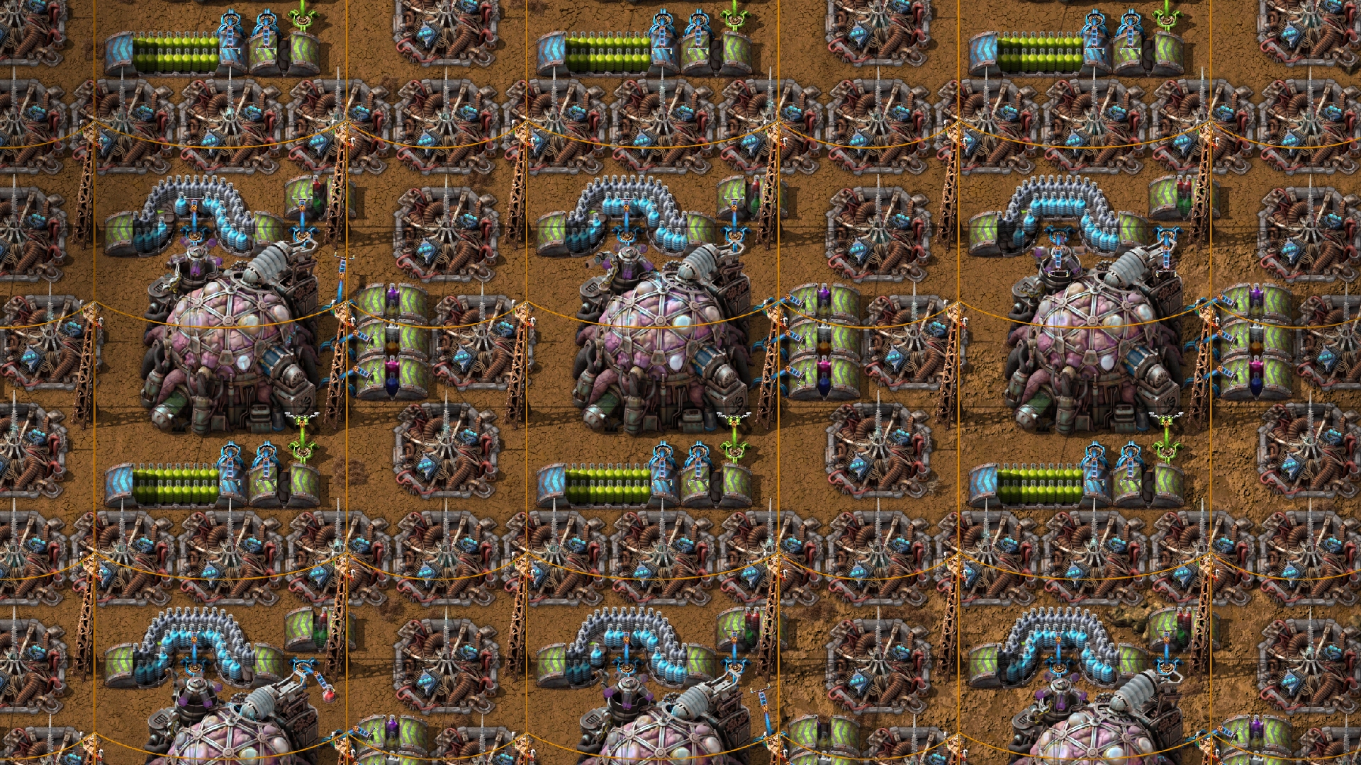 >>50276023 играю примерное по твоему принципу, (с учетом того что я ещё ничего не сжигаю, сливаю только грязный ил), база на синих+ банках работает, (поезда в основном пластины возят (скоро от этого откажусь, открыта плавка всех металлических деталей типо болтов, прутьев и тд из жидкого металла, буду трубами доставлять а возить поездами боракс и литейные подложки), дерево, мох куда нужно, некоторые растения, кокс банки на белтах, на дронах мини-молл работает, боеприпасы по периметру (арт.снаряды и патроны в турели), и редкие компоненты типо мк2 плат, всякие нейроматрицы и тд, т.е. те которые делаются в небольших количествах. База уже настолько плотная, что думаю надо сделать сбоку от неё жидкостную шину (как раз сейчас пластины не нужны будут во все места, мелочевка вся будет делаться из жижи). Но с жуками тяжеловато воюется (танк + дроны vs 70 эволюции)