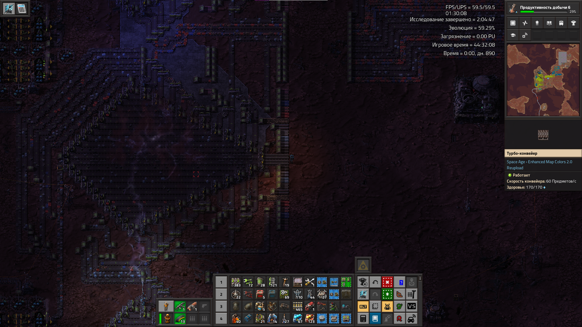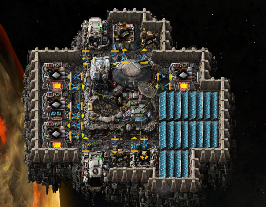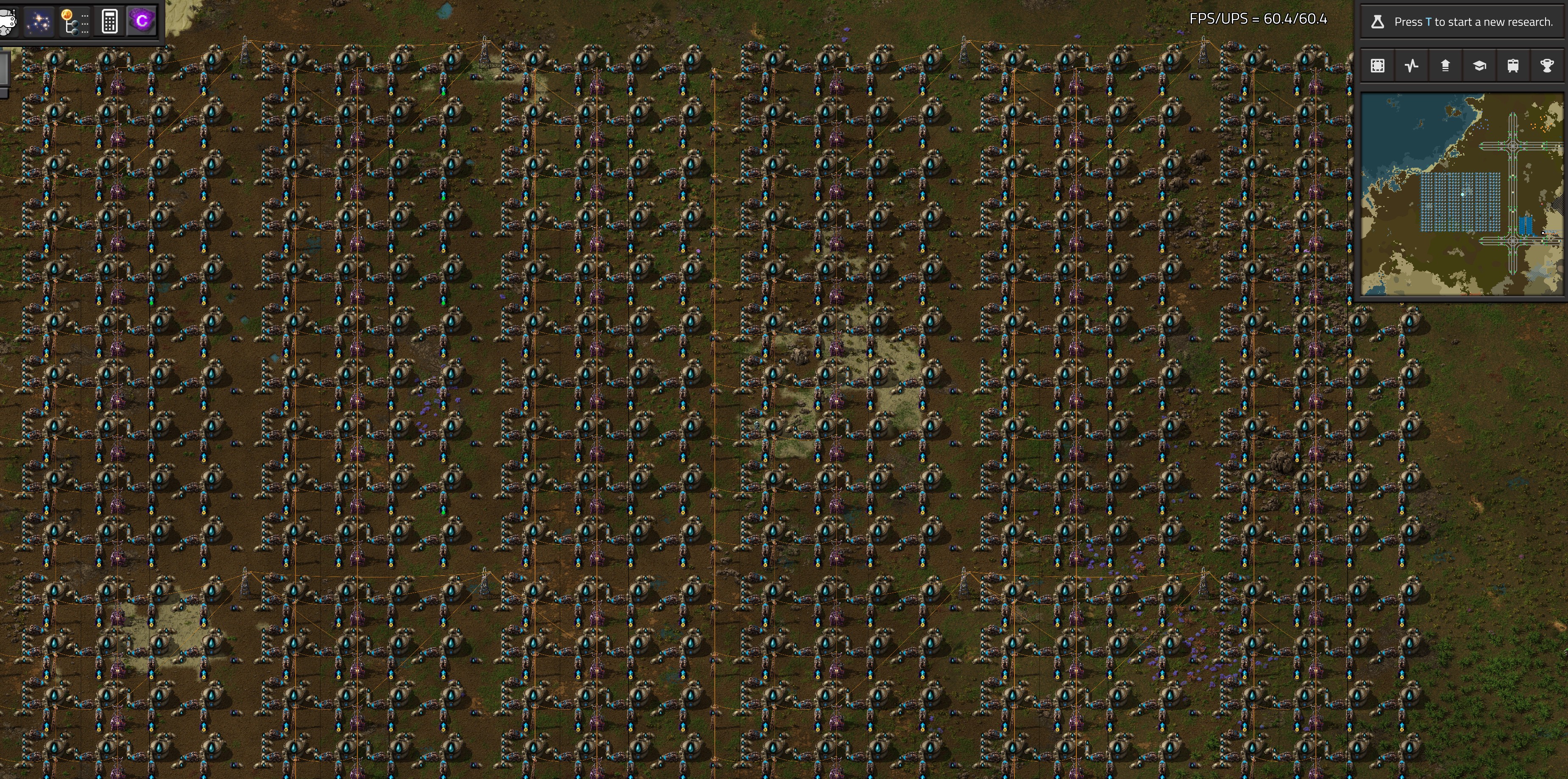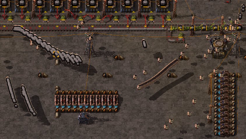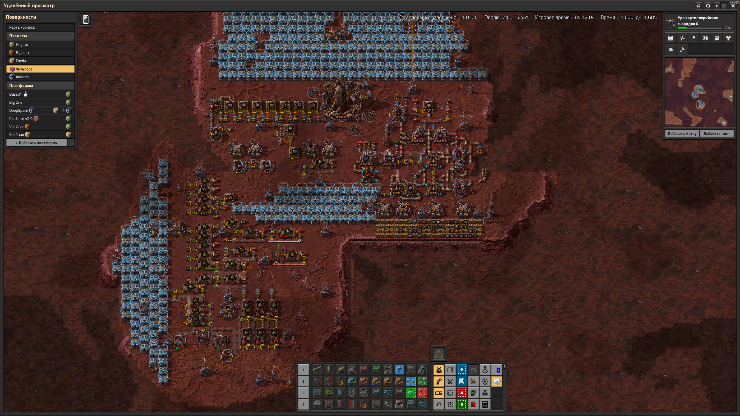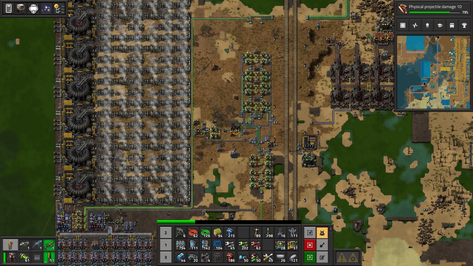>>50276023 играю примерное по твоему принципу, (с учетом того что я ещё ничего не сжигаю, сливаю только грязный ил), база на синих+ банках работает, (поезда в основном пластины возят (скоро от этого откажусь, открыта плавка всех металлических деталей типо болтов, прутьев и тд из жидкого металла, буду трубами доставлять а возить поездами боракс и литейные подложки), дерево, мох куда нужно, некоторые растения, кокс банки на белтах, на дронах мини-молл работает, боеприпасы по периметру (арт.снаряды и патроны в турели), и редкие компоненты типо мк2 плат, всякие нейроматрицы и тд, т.е. те которые делаются в небольших количествах. База уже настолько плотная, что думаю надо сделать сбоку от неё жидкостную шину (как раз сейчас пластины не нужны будут во все места, мелочевка вся будет делаться из жижи). Но с жуками тяжеловато воюется (танк + дроны vs 70 эволюции)