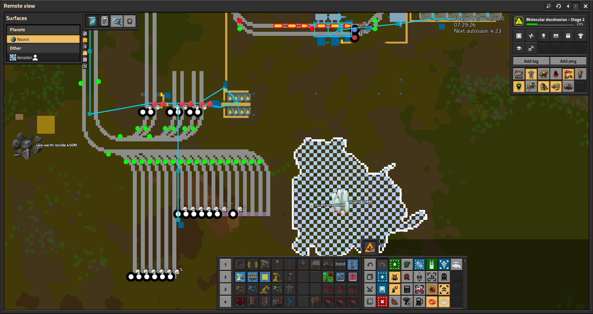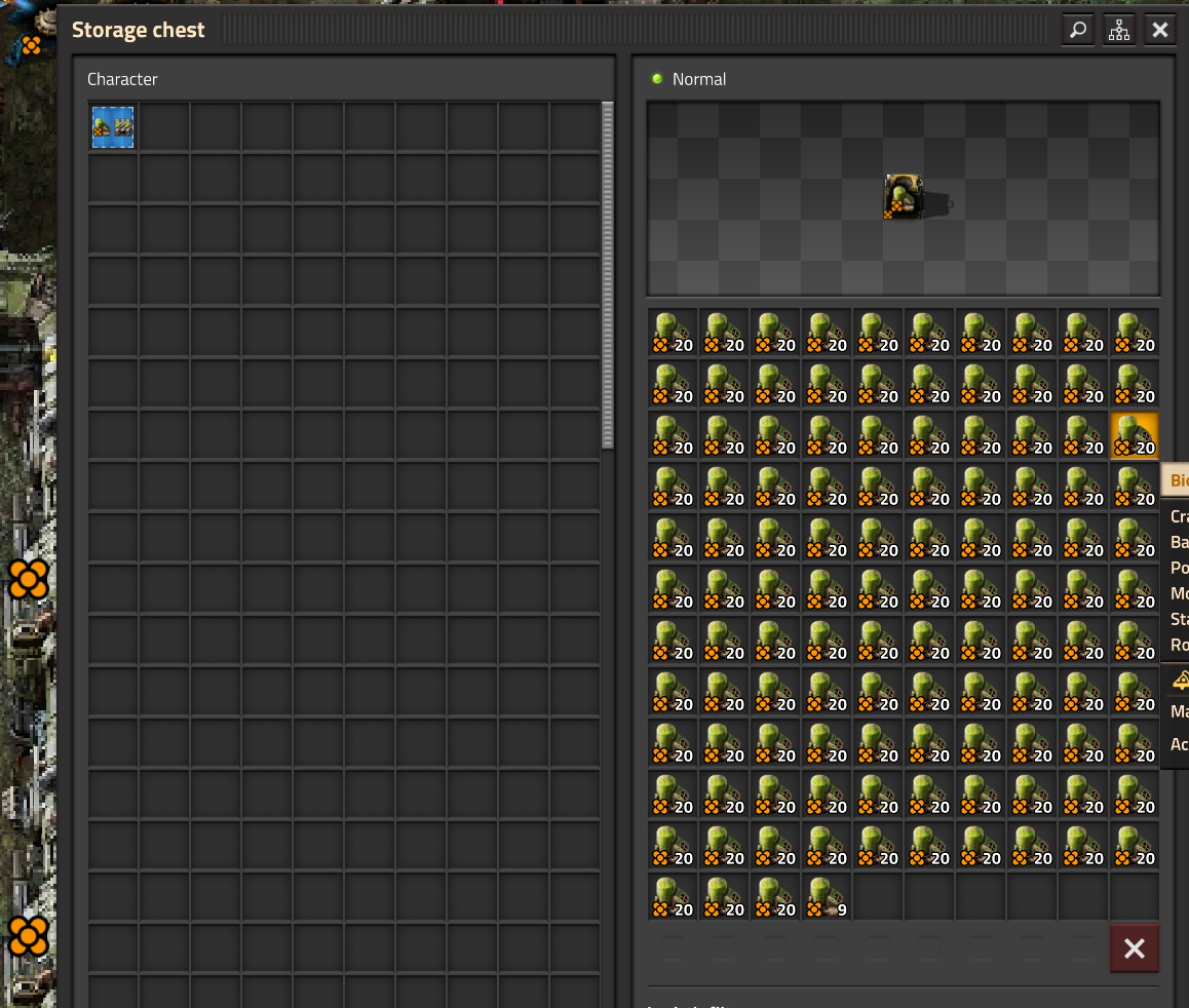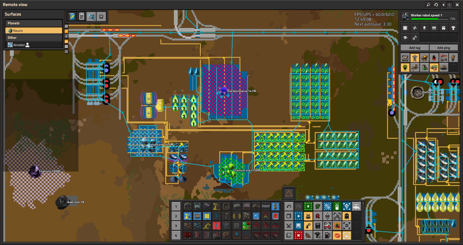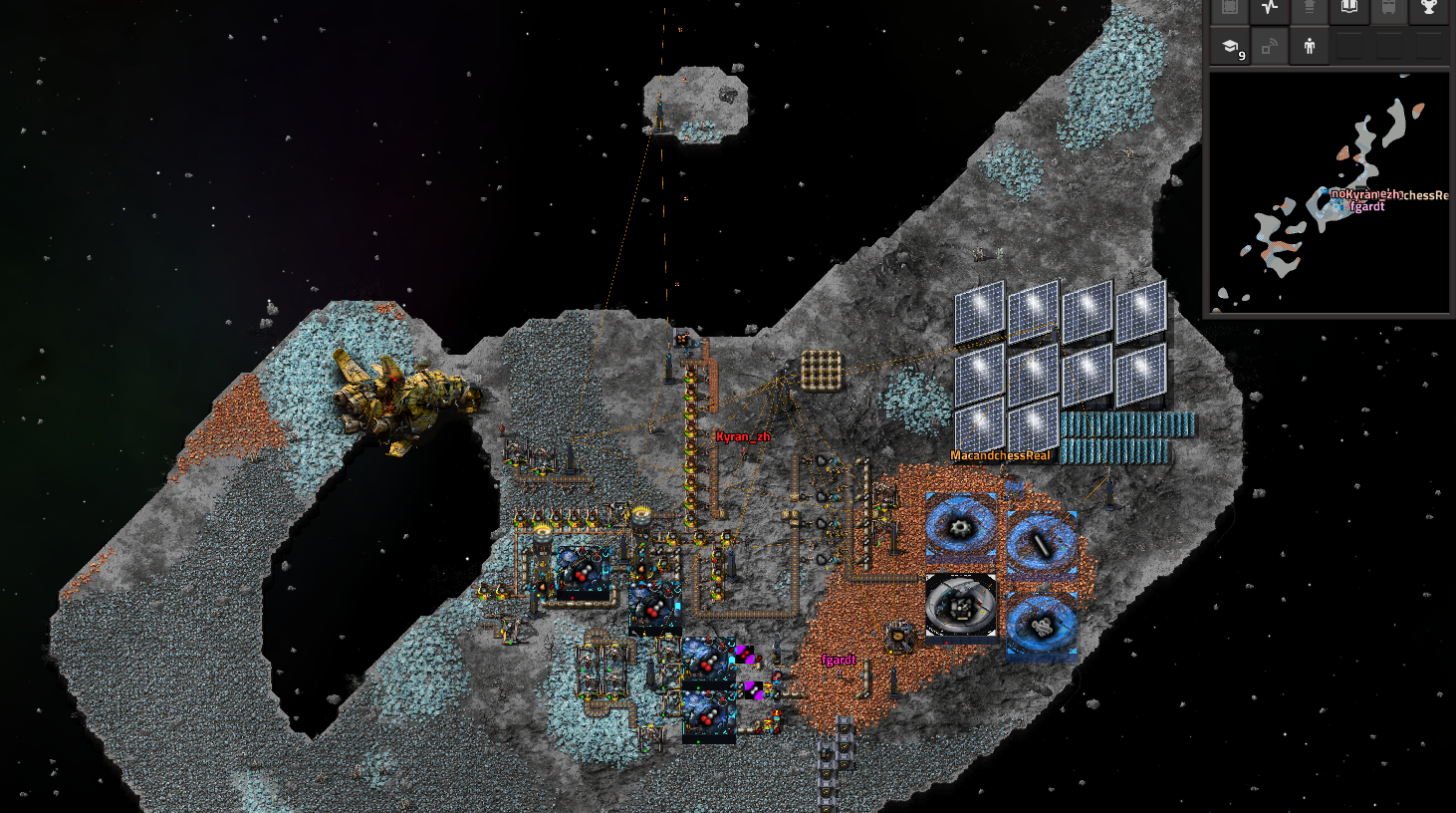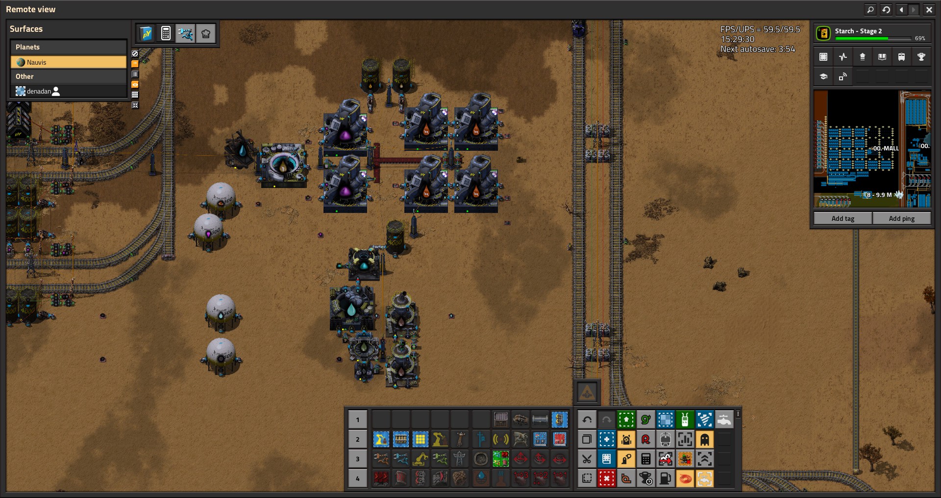 >>50276023 играю примерное по твоему принципу, (с учетом того что я ещё ничего не сжигаю, сливаю только грязный ил), база на синих+ банках работает, (поезда в основном пластины возят (скоро от этого откажусь, открыта плавка всех металлических деталей типо болтов, прутьев и тд из жидкого металла, буду трубами доставлять а возить поездами боракс и литейные подложки), дерево, мох куда нужно, некоторые растения, кокс банки на белтах, на дронах мини-молл работает, боеприпасы по периметру (арт.снаряды и патроны в турели), и редкие компоненты типо мк2 плат, всякие нейроматрицы и тд, т.е. те которые делаются в небольших количествах. База уже настолько плотная, что думаю надо сделать сбоку от неё жидкостную шину (как раз сейчас пластины не нужны будут во все места, мелочевка вся будет делаться из жижи). Но с жуками тяжеловато воюется (танк + дроны vs 70 эволюции)