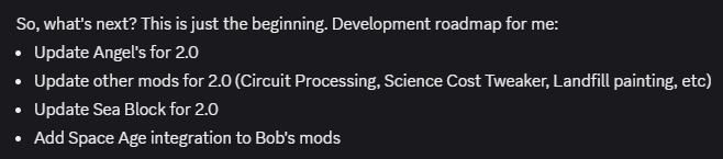 The big issue at the time was to do with rocket silos and specifically rocket launch products. In Factorio 2.0 it’s just not possible to have rocket launch products to go back to the silo. (I did actually find a way to do it with scripts but it was very hacky and also gave a terrible user experience requiring filtered inserts to output from the silo so wasn’t really acceptable.) The game engine basically forces you to send things to a landingpad, and as you probably already know you can only have 1 landing pad per surface.