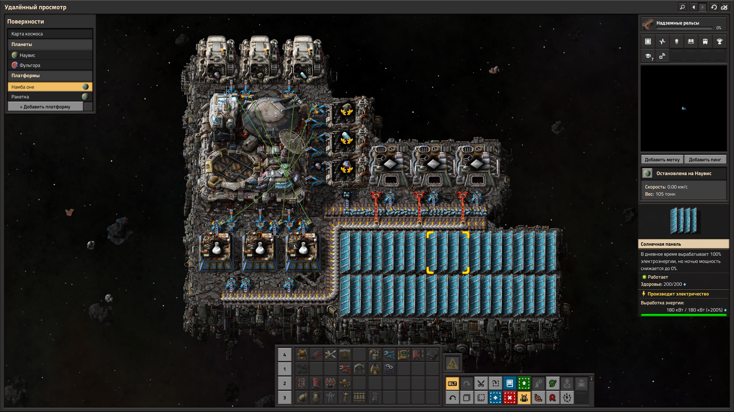 Лучшая песочница для аутистов с бесконечной реиграбельностью. Строительство мегабаз, поезда, космос, научные исследования, артиллерия — бог войны, ядерные технологии, покатушки по лавовой пустоши на танке, тысячи твоих личных дронов-рабов, нефть, выживание на разных планетах — всё это здесь, всё заботливо сделано твоими собственными руками, автоматизировано тобою же и продолжает собирать себя само и радовать тебя. Осторожно: игра затягивает. Не удивляйтесь обнаружить себя в 5 утра автоматизирующим крафт легендарного бетона. И это только ванилла. В тред приглашаются представители всех транспортных конфессий, любители ваниллы и модов — здесь все твои друзья, здесь тебе рады. Новичкам настоятельно рекомендуется пройти обучающую кампанию для получения адекватной реакции на свои посты.