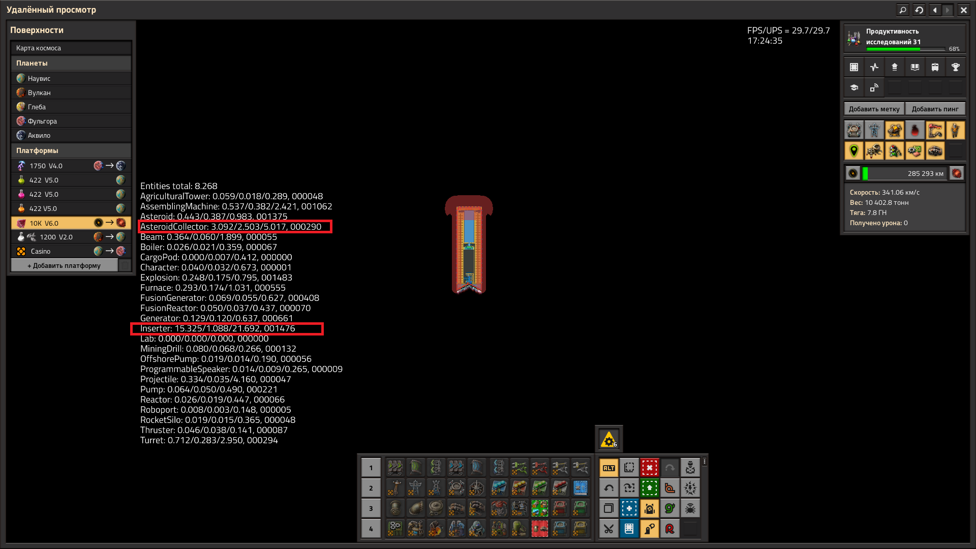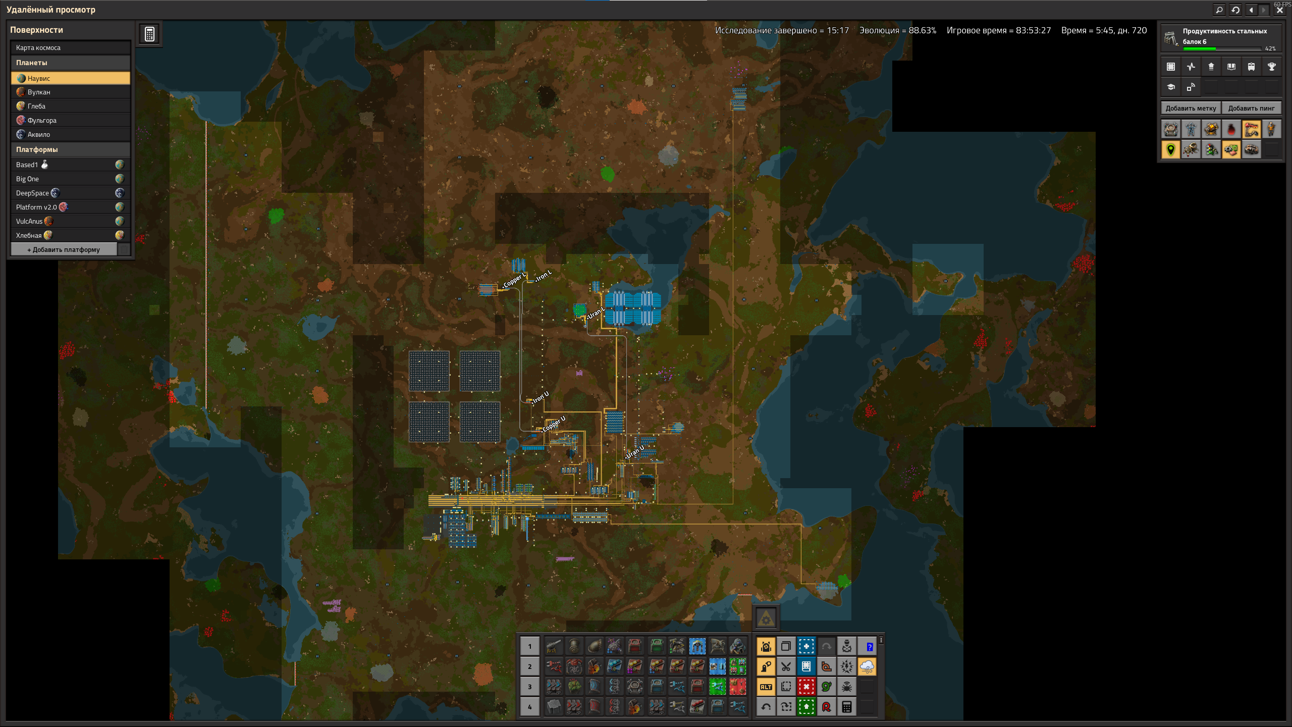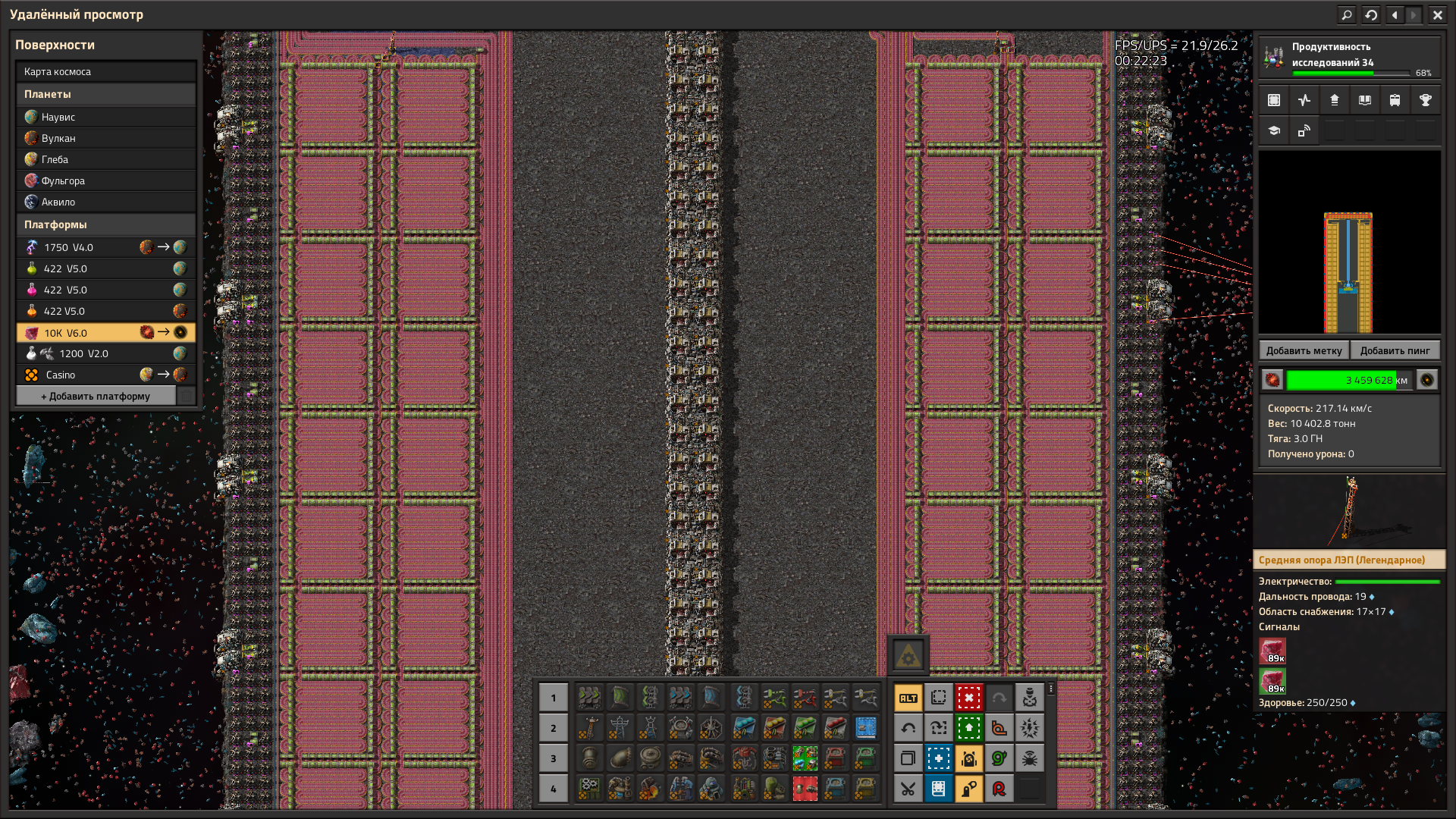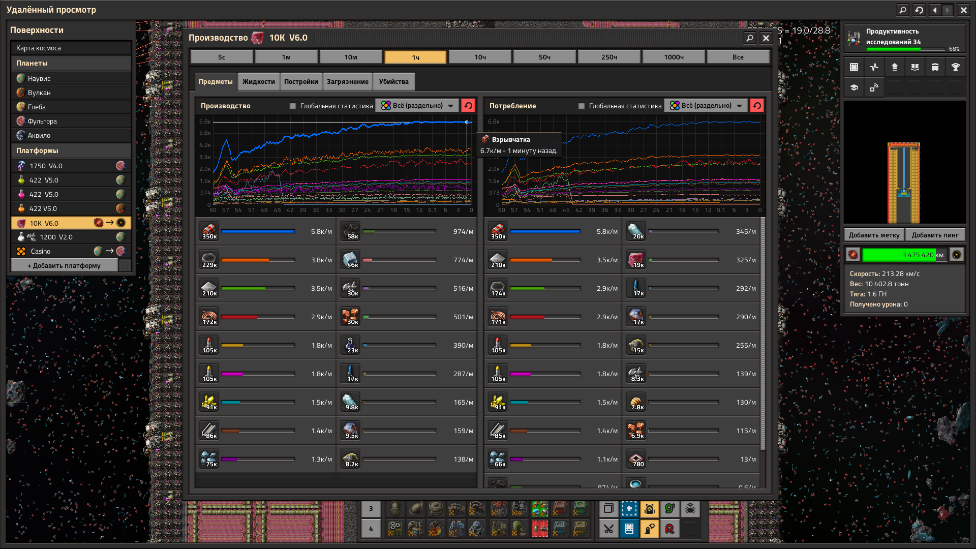 >>50097258 >Плохо что-ли? Да. У нас уже фльгора так работает. Не, ну хлебушки в треде поезда гоняют, но в мете именно отдельные острова. >Для лейтгейма балансируется лагом и пропускной способностью Нет, не балансируется. >Не-ньюфажина, подскажи, насколько быстро производила банки твоя самая развитая мегабаза? Именно банок как продуктов, без учёта множителей производительности лаб Держи. А теперь ты своё. Ты ведь запостишь, да? >>50097406 Нужно всего-то было сделать хорошо, а плохо не делать! Они забалансили, результат можешь видеть. Всё с толком. >>50097695 >поезда для перевозки стали Ой бля, уймись, человек-анекдот. Сам поймёшь где обосрался? А вот со скриншота обосрался уже я. Серенькие ассемблеры - вообще кайф.