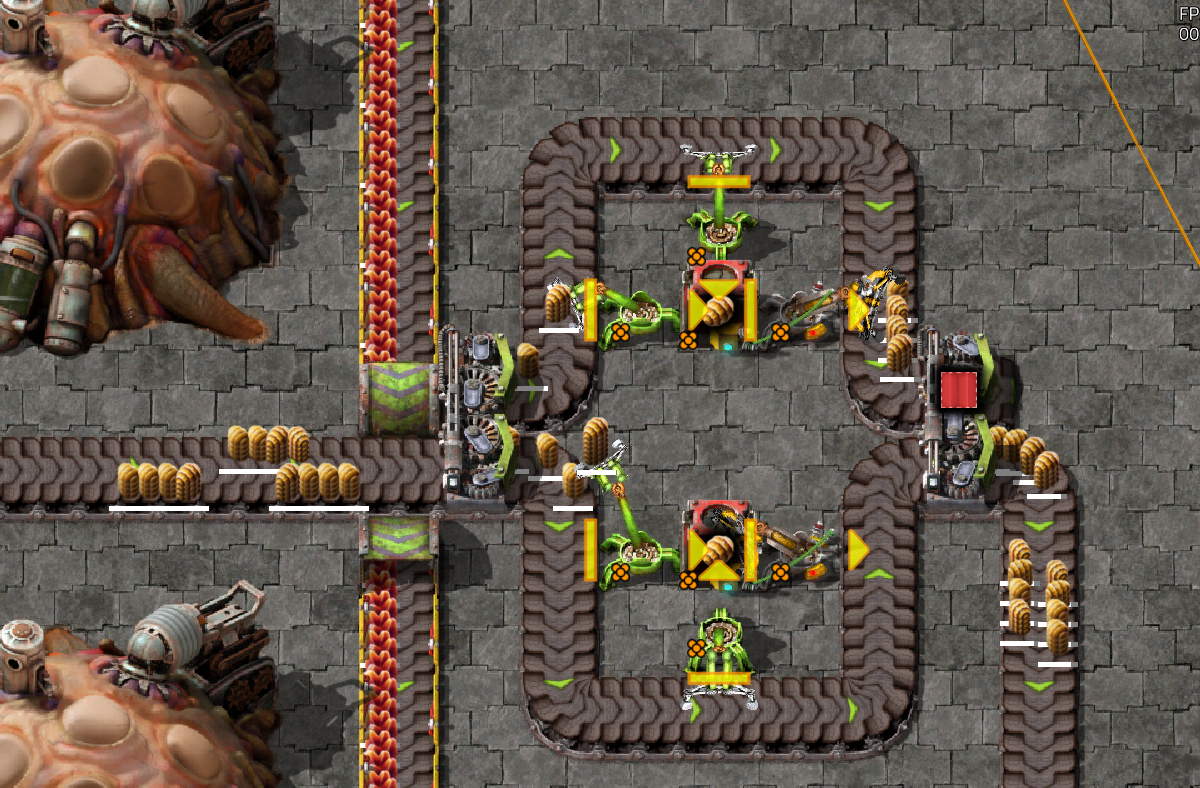 Ппц, забыл, что мне ещё одну ленту надо провести для ресов и пришлось городить костыльный суши-белт, ну работает норм кстати, можно будет почаще практиковать
