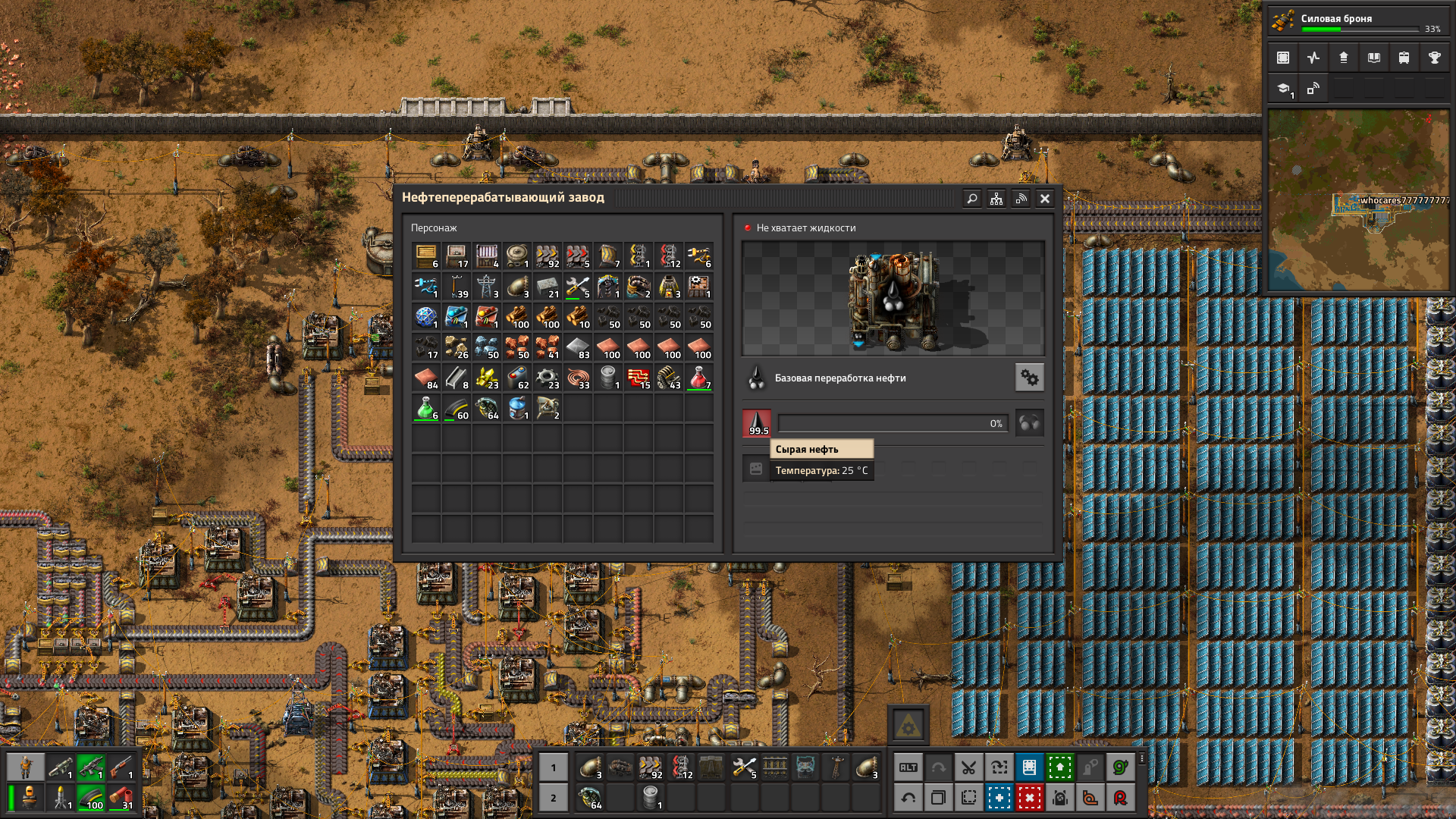 Но вообще спрайты в пу на троечку. Их много, их пиздец как много, десятки типов зданий, некоторые используются для одного зажопного рецепта, некоторые я не буду использовать вовсе (мне тут открыли три типа электростанций и нахуя бы я использовал что-то кроме угля), но качество исполнения больше всего напоминает второй квейк. В том числе разрешением картинки. Впрочем на титульном скрине есть какие-то высокотехнологичные блестящие здания, может они покрасивее будут.
