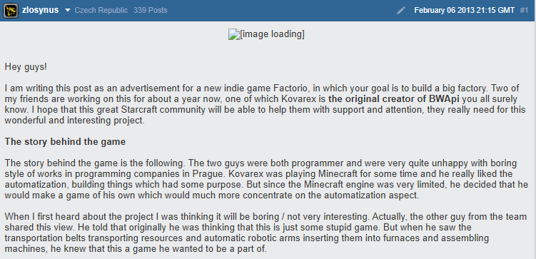 >>50231554 Разработчик факторио стал делать игру на основе своих собственных добавлений в моды майнкрафта (IndustrialCraft2/BuildCraft). И даже пиарил игру на форуме этих модов в 2013.