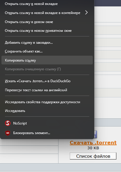 >>50234376 Ну просто ПКМ и копируешь ссылку на хуйню, которая непосредственно торрент открывает. Ну или можешь открыть торрент файл в клиенте скачки и там ПКМ на нем и будет оно прямо так и называться, магнет. Ну если софт нормальный типа TransmissionQT.