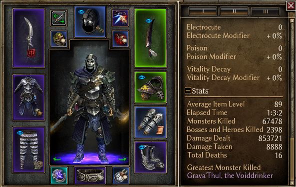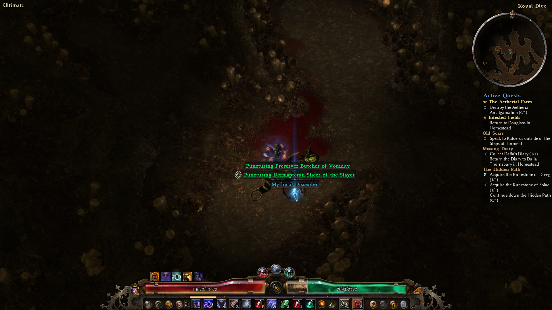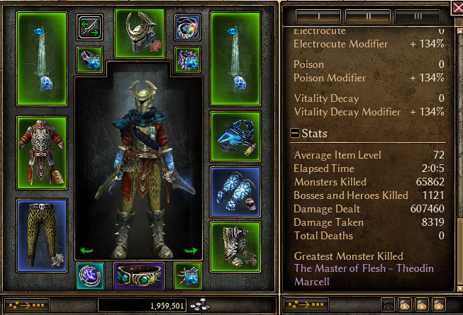 Вышла версия 1.2.0.0, которая довольно значительно перелопатила механики игры. Из значимого: 1) Ауры, постоянные баффы и эксклюзивные скиллы активируются автоматически. Механика нулификации переделана, и теперь только отключает баффы на время, после чего они автоматически включаются. 2) Также на нормале и элите уровень локаций (и соответственно мобов) теперь скейлится вплоть до 100 уровня. 3) После убийства Логхоррена на Нормале открываются сразу и сложность Элита, и Ультимейт. 4) Награды за квесты с очками скиллов\характеристик выдаются сразу за все предыдущие сложности - больше не нужно бегать их выполнять заново на Нормал\Элитку. 5) Добавили стандартный дэш персонажу, по умолчанию поставлен на пробел. Старым персонажам нужно задать кнопку вручную в настройках. 6) У большинства (но не у всех!) мобов и боссов убрали абилки и атаки со снижением резистов, и заменили их дебаффом Sunder - тупо увеличивает весь входящий по игроку урон в % на определенное время (самое спорное нововведение игры). В целом к версии 1.2.1.6 геймплей стал побыстрее и полегче, но супербоссы, шарды и горнило по-прежнему оставляют простор для трайхарда. Кому все эти перемены не по нраву - могут скачать с интернета версию игры 1.1.9.8 - это последняя версия без сандера.