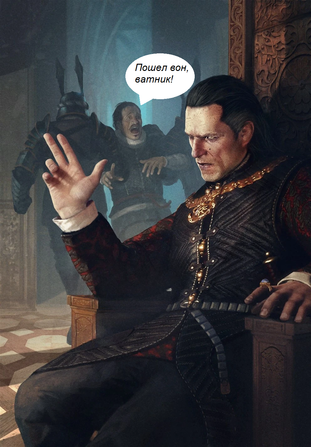 Или ещё одна характерная особенность - у подобных ДОМАШНИХ диктаторов никакой политики, которые могут быть, а могут и не быть алкашами, во всём всегда виноваты кто угодно, но не они. Они - жертвы, белые и пушистые. Вот и барон себя так же ведёт - в побеге жены у него виновата прошляпившая её стража, в пожаре в конюшне - слуги, а напившись, начинает обвинять в своих страданиях и самого Геральта - хули он так мало старается. Задуматься над тем, что, может быть, они в чём-то неправы сами, им в голову не приходит, потому что у них тогда вся картина мира рухнет. Им хорошо от мысли, что плохо им исключительно по вине других, поэтому им всегда должно быть плохо, а то от чего же им хорошо будет?
