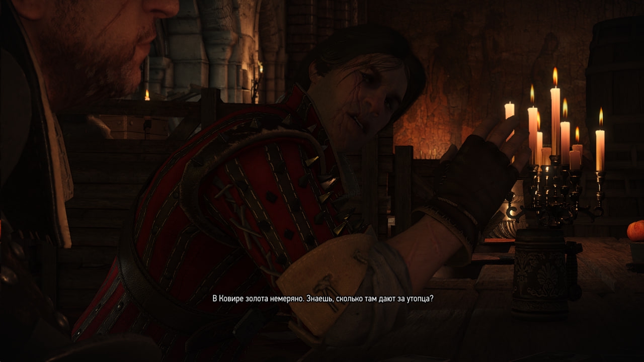 Или то, как они, только не поймите меня неправильно, мата напихали попадя и непопадя. В Польше мат обладает особым значением, и у Сапека, как и у редов, это важная часть образа Трисс даже в припадке гнева следит за тем, чтобы употреблять исключительно допустимые в обществе ругательства. И поэтому важно то, что Геральт, за исключением редкой курвы, практически ни разу за все книги и игры не выматерился. И вот такому персонажу, как Барон, который матом действительно буквально через слово разговаривает, матюки оставили только в стратегически выбранных местах, зато Геральту "блядей" в случайные строчки из мешка отсыпали.
