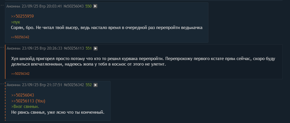 >>50158777 Так вот он какой - легендарный троллинг тупостью... >>50158859 Да тут один ненавистник одного народа, который тоже любит чубы на голове, только против него и топит. Я и сам с ним срался, и видел что другие срались. По факту всё верно, каким Ольгерд не был, отдавать его душу дьяволу - это не-ведьмачьи.