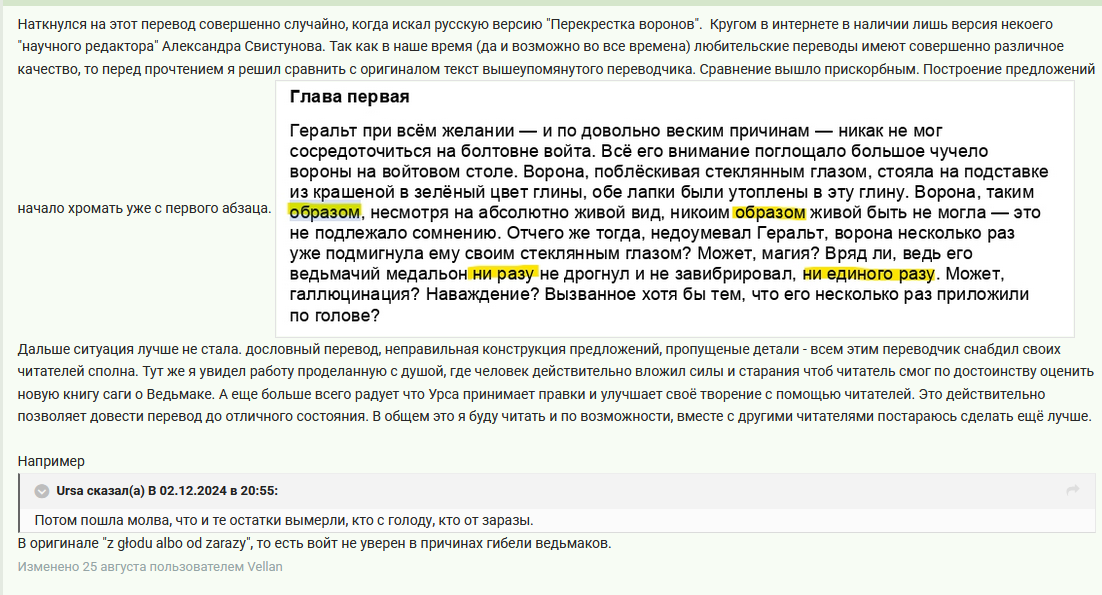 >>50356247 А можно ль где то найти и прочесть подборку неточностей вайсбротовского перевода в полном объеме по всей саге? Кстати да в башне или владычецы толи Вайсброт, толи сам Сапек перепутал Визимира с Радовидом. Что вызывало у меня диссонанс, пока не ущнал, что это косяк.