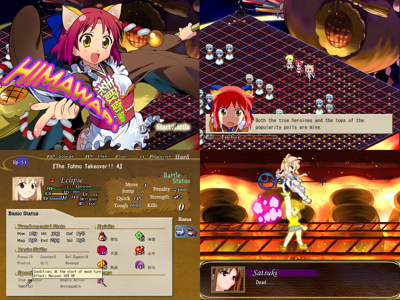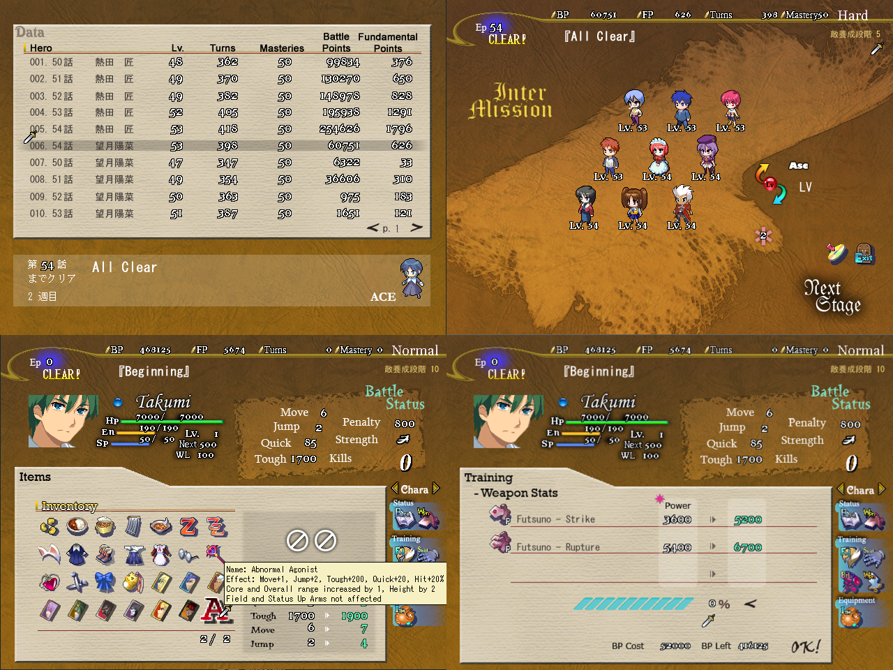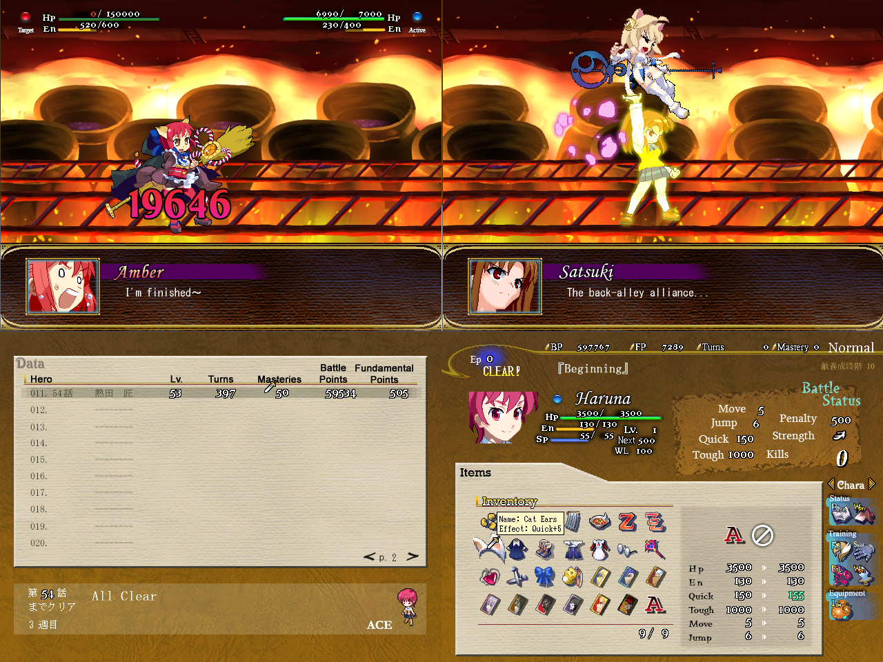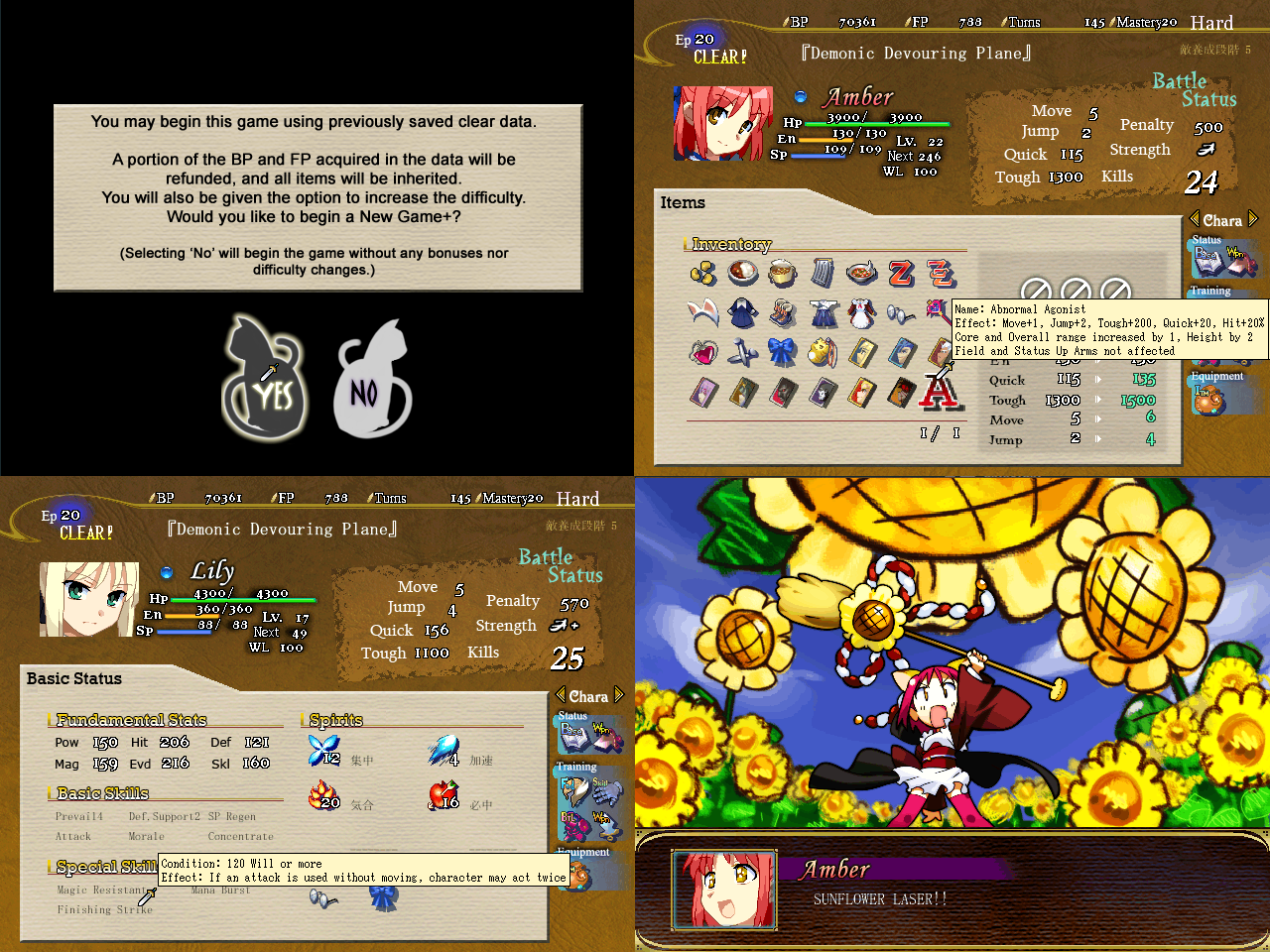 Но есть неприятные баги. Первый вообще не критичный- саппорт-атака в игре в принципе работает криво: считается, что юнит, совершающий саппорт атаку, бьет не со своей клетки, а с клетки юнита, проводящего основную атаку. Второй ОЧЕНЬ КРИТИЧНЫЙ- после победы в финальном 51 эпизоде игра просто закрывается, причем и на семерке, где я ее проходил первые два раза, и на десятке. Никакие совместимости не помогают, сам я этот момент всегда проскакиваю на старом компе с ХР (возможно, сработает и на виртуальной машине с ХР)- только надо учесть, что для нормального шрифта игре нужна поддержка японского языка в системе, которого в ХР по умолчанию нет, если его при установке не добавить. Третий обходится геймплейным абъюзом: в финальном бонусном 53 эпизоде Сэйбер Лили хреначит площадной атакой, и если в радиусе ее действия никого не окажется, она ее запустит в молоко, а игра вылетит с ошибкой. Очевидно, надо просто держать под ней персонажа с высоким уворотом и сохранять перед концом хода, чтобы загрузить, если он вдруг огребет. Но я в этот раз убил ее еще до того, как она стала по площади бить.
