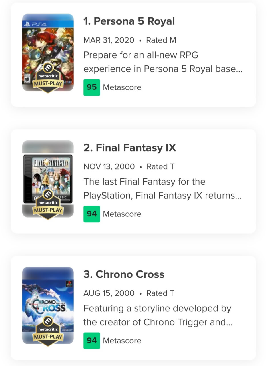 RPG и TRPG: серии Disgaea, Final Fantasy, Neptunia, Phantasy Star, Tales of…, игры от Nihon Falcom (YS, Legend of Heroes, Tokyo Xanadu)