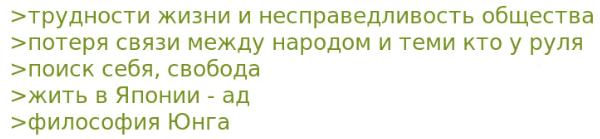 Моей главной проблемой с Чайками является концепция кошачьего ящика - из-за этого становится похуй почти на всё, что происходит с героями, так как ты понимаешь, что это всё не по-настоящему. Ну и то, что раз за разом переживаешь почти те же события в тех же локациях тоже не айс Возможно поэтому больше всего мне понравились эпизоды, происходящие в реальном мире - почти всё, что связано с Энджи, флешбек с Марией и Розой, ну и предыстория Ясу, хотя и там меташизы хватает. ВН скорее понравилась, чем нет, но после такого Цикад от этого же автора я, пожалуй, не осилю. Благо, у неё есть неплохая аниме адаптация, насколько я знаю, может хоть так ознакомлюсь.