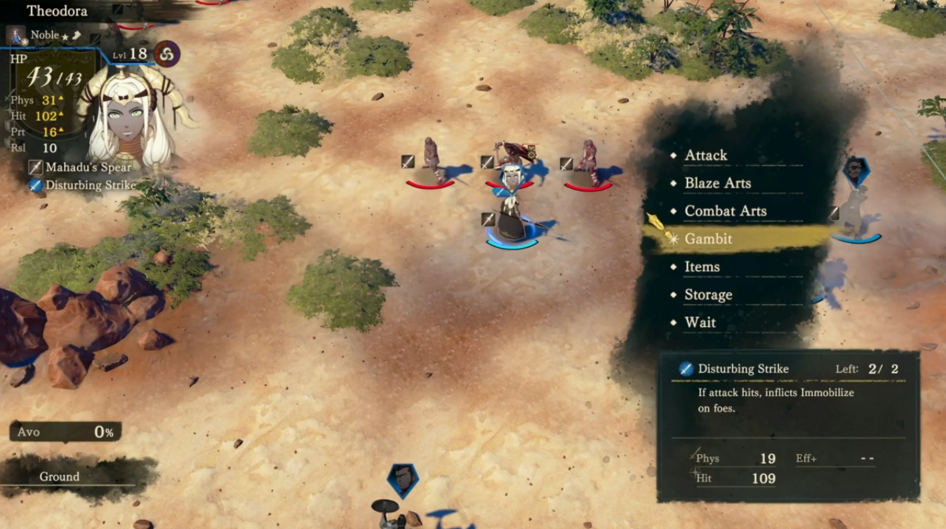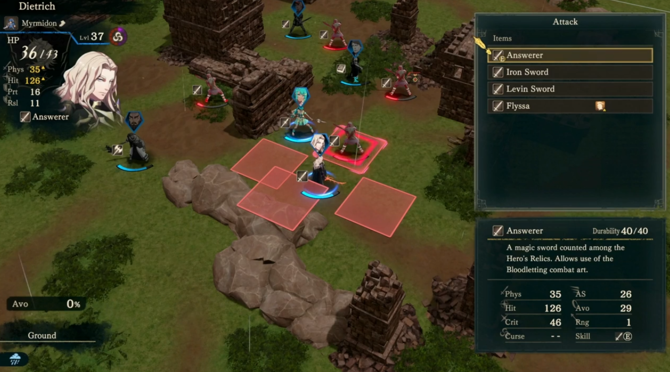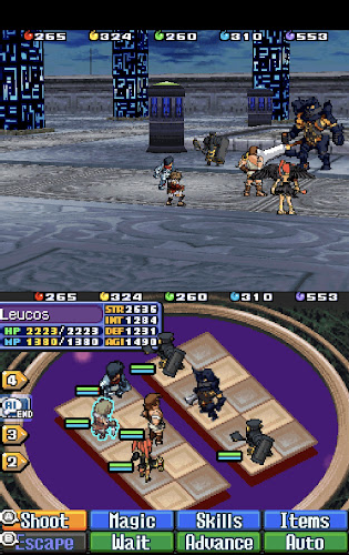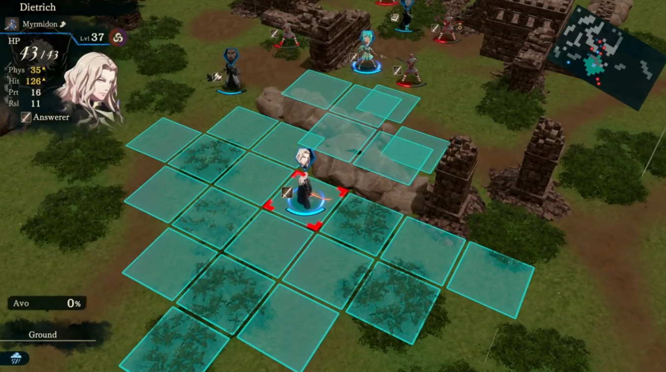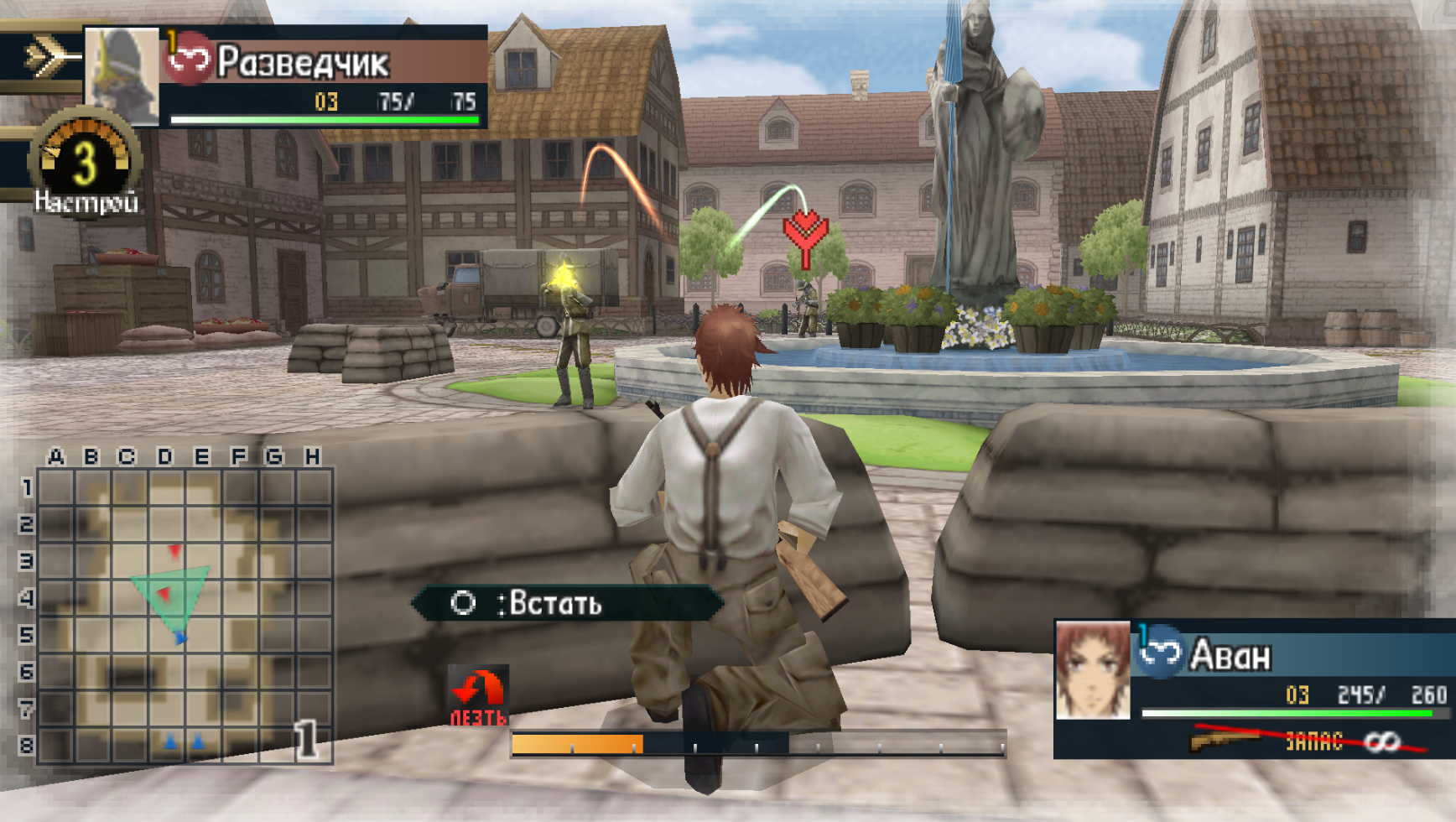 Во-первых, у некоторых атак помимо основного радиуса действия, отмеченного красным цветом, есть еще желтый, в котором наносимый урон будет снижен. Во-вторых, здесь нет никаких разных типов местности (вода, земля, воздух и космос) и показателей боеспособности на них, но зато есть разные уровни по высоте, поэтому у персонажей появилась дополнительная характеристика Leap, отвечающая за число клеток, на которые за ход он может вверх запрыгнуть, а у атак- Hеight, указывающая на максимальную высоту. В-третьих, тут нет флагманского корабля, который может загружать и выгружать юниты. Ну и в четвертых, что самое главное, FP (они же Fundamental Points) за убитых врагов не дают нанесшему добивающий удар персонажу, а добавляют в общий пул, поэтому саппортами можно никого вообще не бить, ведь они за баффы и перезарядку и так быстро качаются, а навыки им покупаются за очки из упомянутого пула.