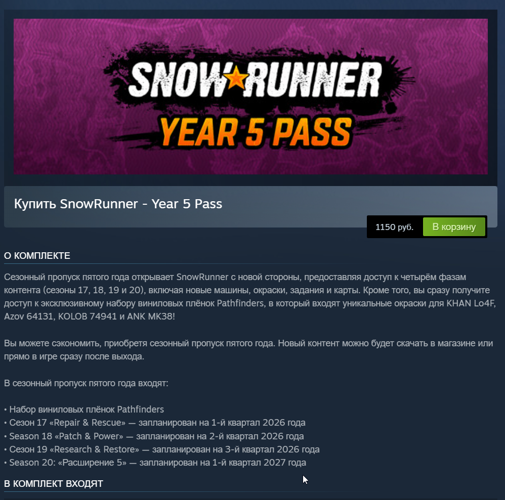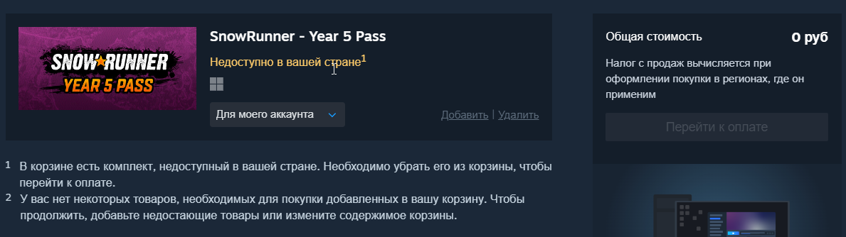 >>50167776 Кодик можно взять там, где ими торгуют, а все ДЛЦ продаются прямо в стиме по прямым линкам без всяких КВНов. https://store.steampowered.com/app/2154174/SnowRunner__Season_12_Public_Energy/ - например так. Там вскукареки от правообладателей вражеских марок были, потому и убрали с региона, анон выше сечёт тему верно. Так-то вся хуйня обходится за пару кликов.