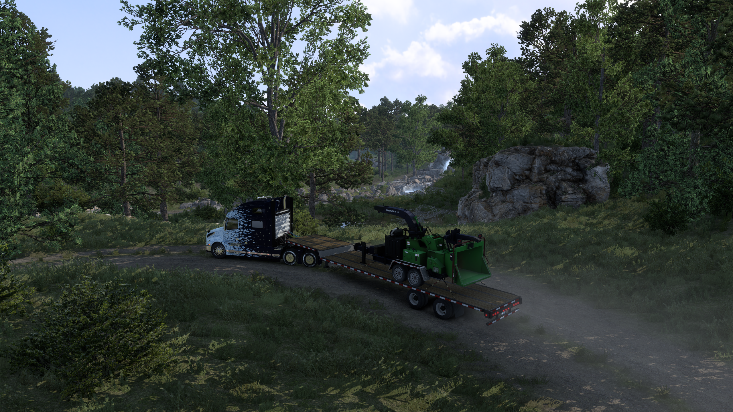 >>50190845 Похожа чисто визуально. По геймплею больше похожа на Казахстан, только там нарезаешь круги вокруг ям в земле, а тут вокруг гор по ебаным болотам. Склады находятся хуй знает где и нормальной дороги нет, надо ползать по говнам. Они же старались реку рисовали ну че ты, теперь ты будешь смотреть на эту ебаную реку снова и снова. В говнах мало что поворот на повороте не пролезешь, так еще и дорога кривая пиздец, все время заваливаешься набок. Я бревна довез только с третьей попытки, переворачивался. Ездить можно только на восьмиколесных йобах и то тошнить на пониженой с блокировкой. Без РЛ мода бака не хватает даже в один конец, я заебался гонять татру заправлять тягачи. Заезжаешь на другую локацию, а там все то же самое, литерали копипаста.