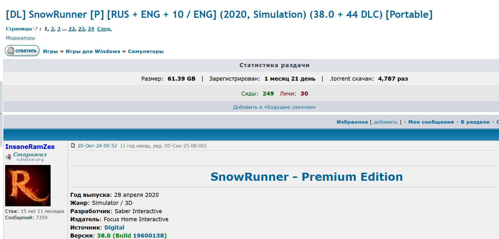 >>50208016 А я наоборот ваниллу Snowrunner'а терпеть не могу. Модами дотянул до приемлимого уровня, но красноглазить уже как-то надоело. Все равно по физике, да и ощущению от управления в целом, оно не дотягивает до Mudrunner. В Mudrunner как-то больше чувствуется, что ты управляешь грузовиком, который тянет достаточно тяжелый груз. В Snowrunner техника все равно напоминает RC машинки.