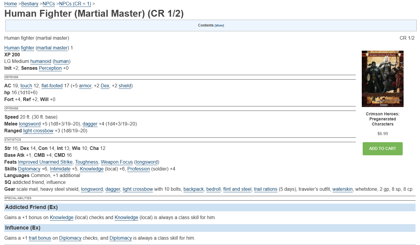 >>50176575 > Вот когда я хочу делать именно тру файтера я вот примерно такое представляю. Файтер это буквально любой боец солдат с подготовкой/обучением ведения боя с оружием и доспехами. Файтер лвл 1 это уже немного лучше среднего пушечнего мяса, в зависимости от статов. Файтер обычно вооружен типичными для его культуры и происхождения экипировкой, но в теории может воевать с чем угодно. Файтер специально совершенствуется в своем ремесле и знает кучу разных "фишек", но вряд ли преобладает в чем то другом.