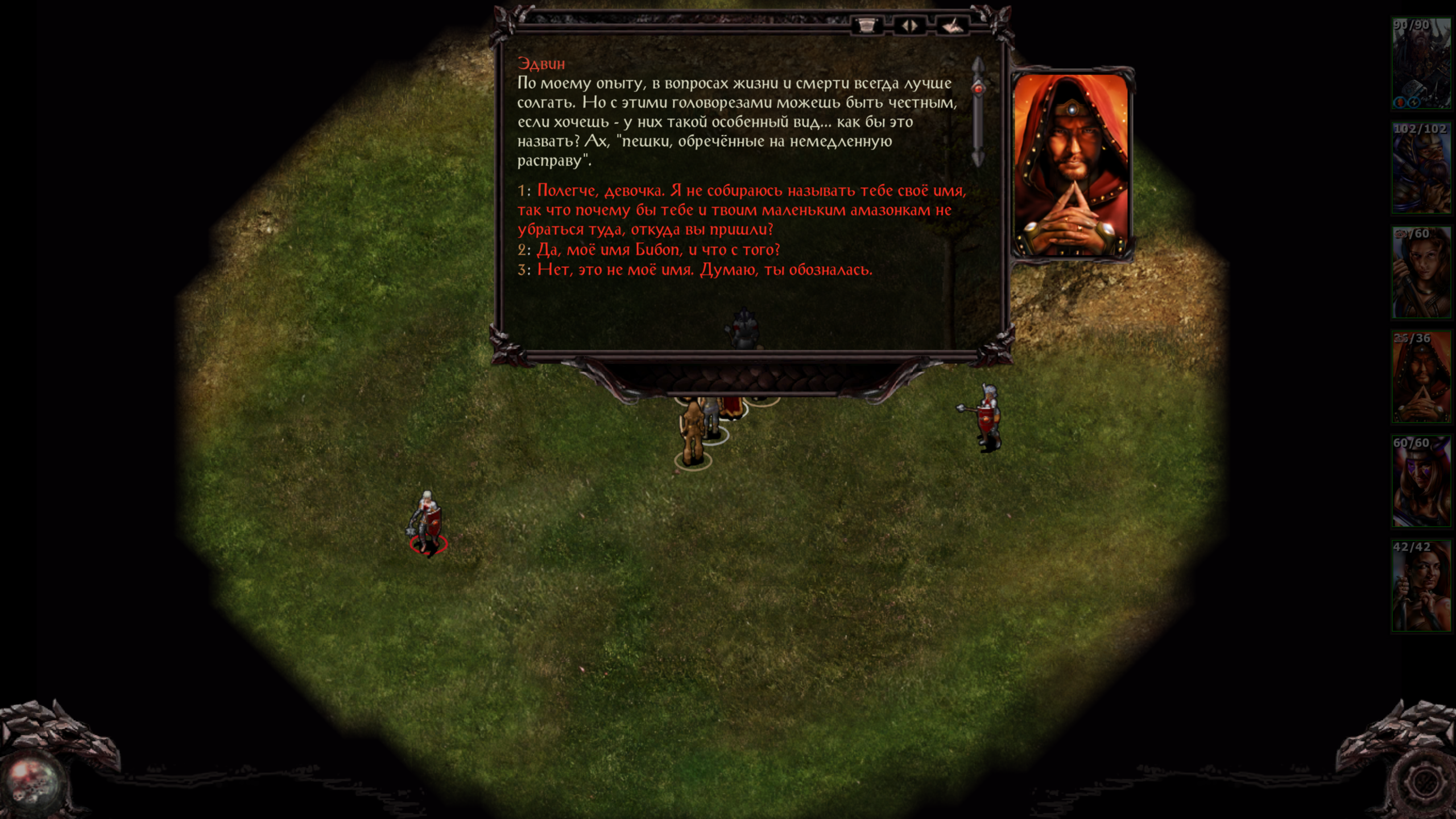 Сделал себе файтера с дуалами на цепах, чтобы на 9 уровне задуалиться в клерика. Со всеми клериками вечно какая-то проблема в игре, решил самому впервые за него поиграть. Кагайну нашёл пояс силы и перчи ловкости, он тоже на дуалах будет - с двумя топорами. Машина, а не персонаж. Для разнообразия сделал его дварфийским защитником. Джахейру планирую романсить во второй части. Её сделал шаманом. Странные от класса впечатления. С одной стороны на две головы слабей её обычного воина/друида, но с другой стороны - какой же кайф играть без запоминания заклинаний. Эдвина сделал соркой, опять для незапоминания заклинаний. Внезапно его кольцо на +2 спелла работает и с классом сорки, так что получилась имба. Хотя я считаю, что для мага оно сильней. Впервые играю с ШарТил. Сделал её следопытом-лучницей, по какой-то причине СКС не заметил проблем в том, чтобы дать ей класс, несоответствующий её мировоззрению, хотя там два режима: с соблюдением классовых ограничений и без них. У меня включён первый. Сафана - единственная, кого я не трогал. Вор в СКС очень нужен. Хотя зачем играть вором, когда можно играть мультиком воином/вором? Не знаю, может поменяю на кого-нибудь. Вы меня спросите, зачем мейнить клерика, если я не люблю запоминать спеллы - я что ебанутый? Ну видимо да.
