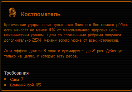 >>50181230 Ну, почти как мой Брюс Ли билд. Только у меня не было экспоз викнесс - электроножи позволяли роботов норм ковырять, я не допёр что боне брекер работает на кулаках лол, у меня был хэви панч, не было вайл випонри и тфб. Вайл випонри - как ты собрался тригерить? ТфБ вроде выгодно, будешь в ход по одному даже если бить, норм будет. Рестлинг действует даже на Сикс. С ним по тебе режевик хуй попадёт, если переживёт атаку, а пережить он её может если только АР кончатся. Полезно для ёрли и нодэс.