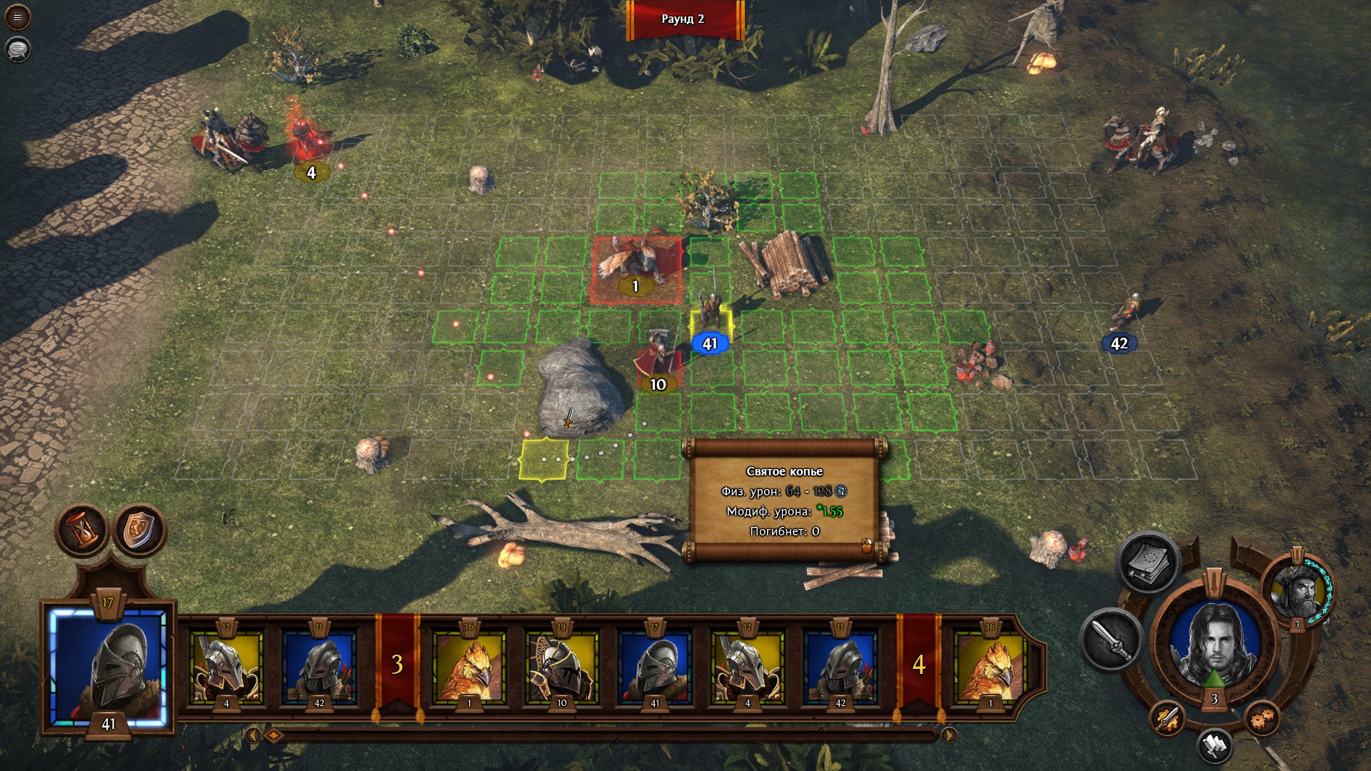 Можно атаковать препятствия на поле боя, вот это дела! Причём у камня и у кучи брёвен есть фланги и зад, по которым соответствующие модификаторы к атаке применяются. Шизмера - учись.