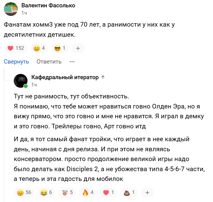 Чё-то оревно как-то. Построили всю пиар кампанию на возвращении к истокам, а фракции и игра как будто из Юбиковского Ашана, чё подписка на нейронку кончилась на портретах для героев? Или промт криво написали и теперь приходится отбиваться от фанатов трёшки (которых и зазывали) под кроватью? Алсо, а в чём прикол в перках на перманентный буст инициативы? Это же натуральный маст хев который будут брать все, в результате чего профит будет выходить в ноль?