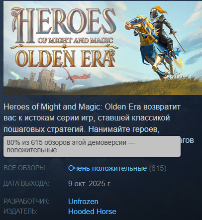 Онлайн демоверсии Heroes of Might and Magic: Olden Era в Steam превысил 20 тысяч человек Первые отзывы оказались очень положительными — игру сравнивают с третьей частью.