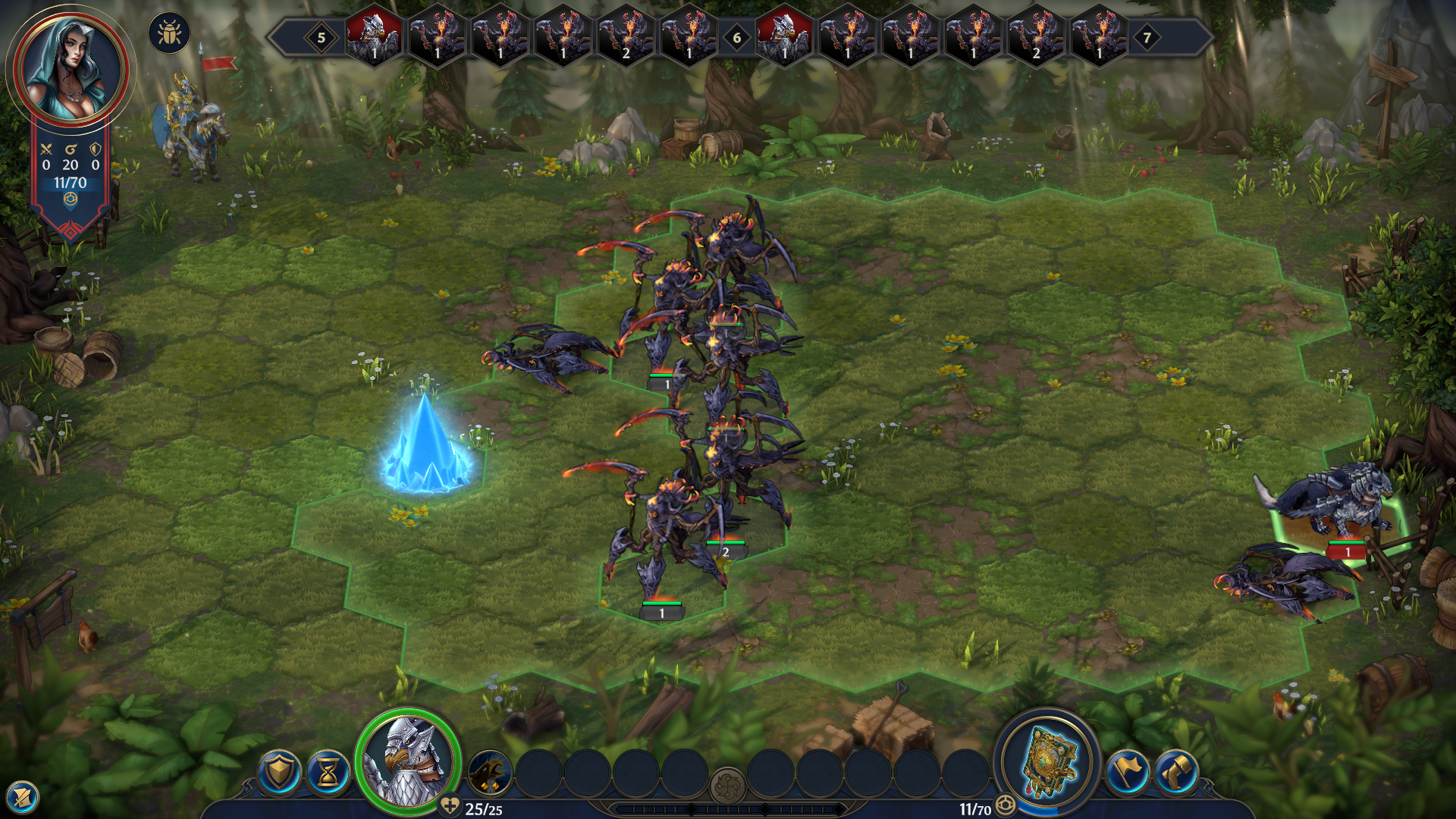 Графон ну нормальный. Поле битвы выглядит очень приятно. Визуальный дизайн крич и иллюстрации портретов как не нравились так и не нравятся. В режиме контрастности играть можно норм, все видно. Музыка скучная. Интерфейс сырой и недоделанный. Во-первых он разнесен слишком широко по экрану. Во-вторых он не всегда ведет себя так, как ожидаешь. Пытался нажать на объект за кричей на карте, чтобы узнать, что он такое, и не смог. Чтобы отменить заклинание в бою надо нажать ПКМ но только по пустой клетке, когда выбран спелл нельзя посмотреть справку про цель. В английском тексте ошибки и опечатки. Что они делали столько лет и почему не могли вылизать все это после двух бета тестов загадка. В игре нет нормального мануала и энциклопедии, хотя даже в семерке был мануал. Зато игра очень быстро запускается и загружается, это важно. От нажатия запуска в Стиме до того как ты в карте проходит очень мало времени, а грузная семерка на анриле пердела минуты четыре пока дает тебе поиграть. Что по балансу пока не очень понятно, надо играть в долгосрок. Система законов интересная. Магию не ощутил, как будто бы слабая. ИИ что-то умеет, заметил, что иногда ждет юнитами, но не по-тупому всегда, как в семерке. Режим аренки похож на HRTA и потенциально должен быть довольно интересный но играть лаки тесты против бота нет смысла, а в демке сетевой игры нет. Все еще не могу понять, как они будут завоевывать аудиторию такой игрой в 2025 году, и еще ТАДАДАДАМ в 2026 с релизом даже не выйдет вся кампания. а только ее часть.
