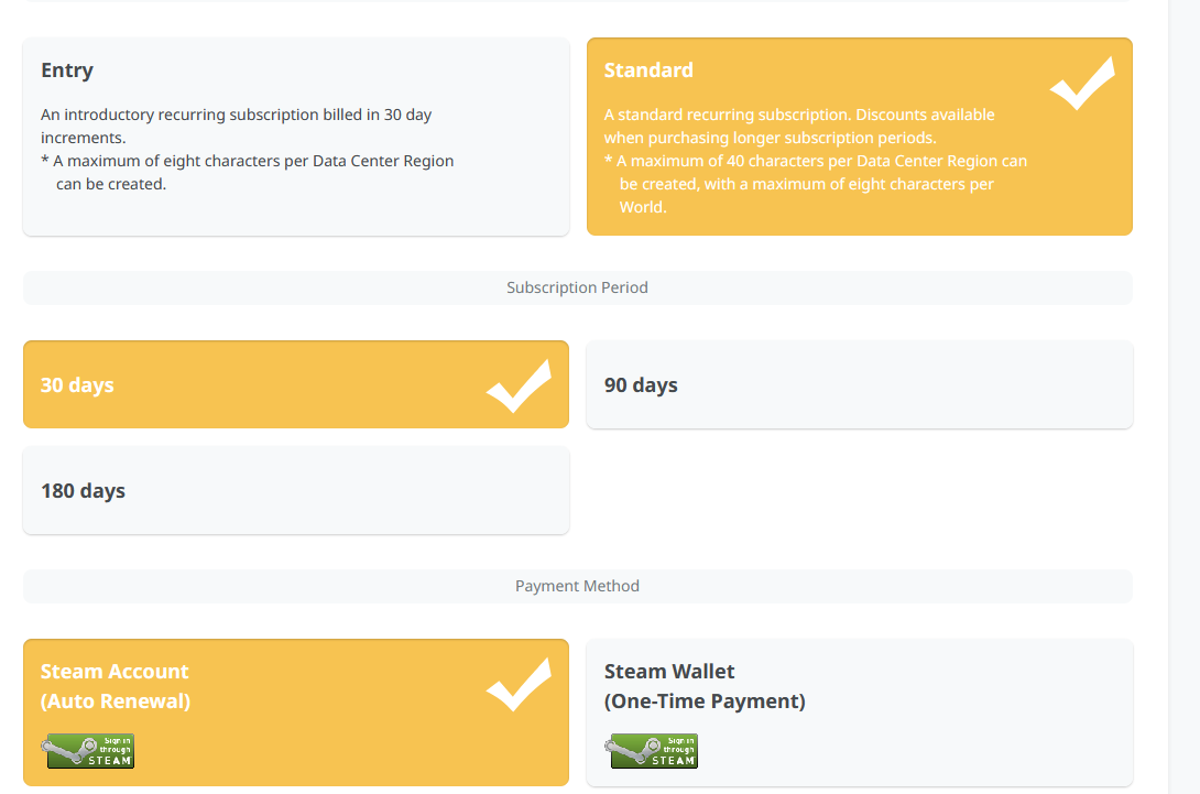 Стоимость подписки: от 11 до 13 евро в месяц, если оплачивать не через стим и без автопродления. Подписка при оплате стим-кошельком одноразовым методом: 900р/мес -8 персонажей/сервер, 755р/мес -1 персонаж/сервер. Подписка при оплате стим-кошельком методом автопродления: 289р/мес и 259р/мес соответственно. Первый месяц - бесплатный и не требует оформления подписки.