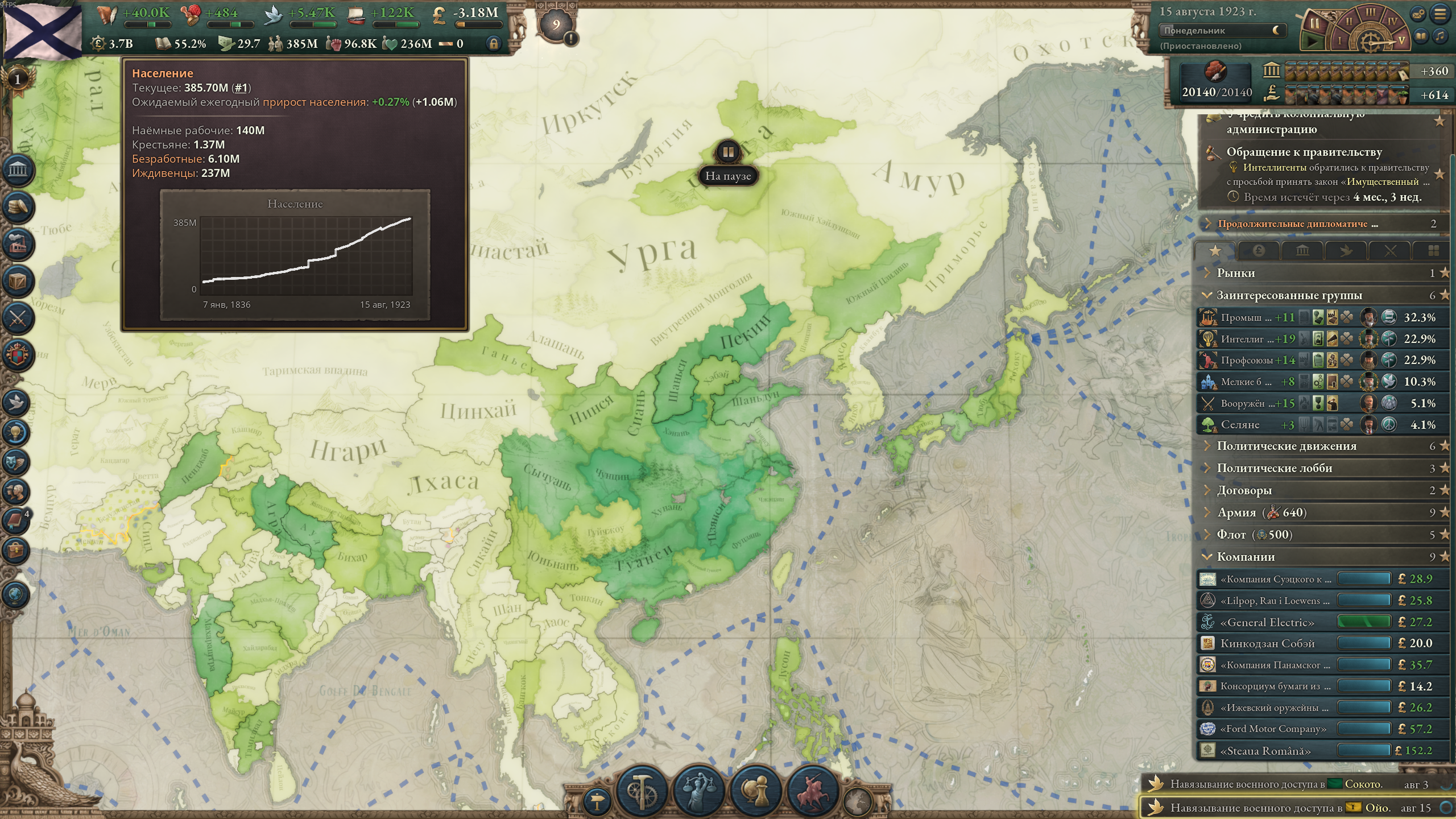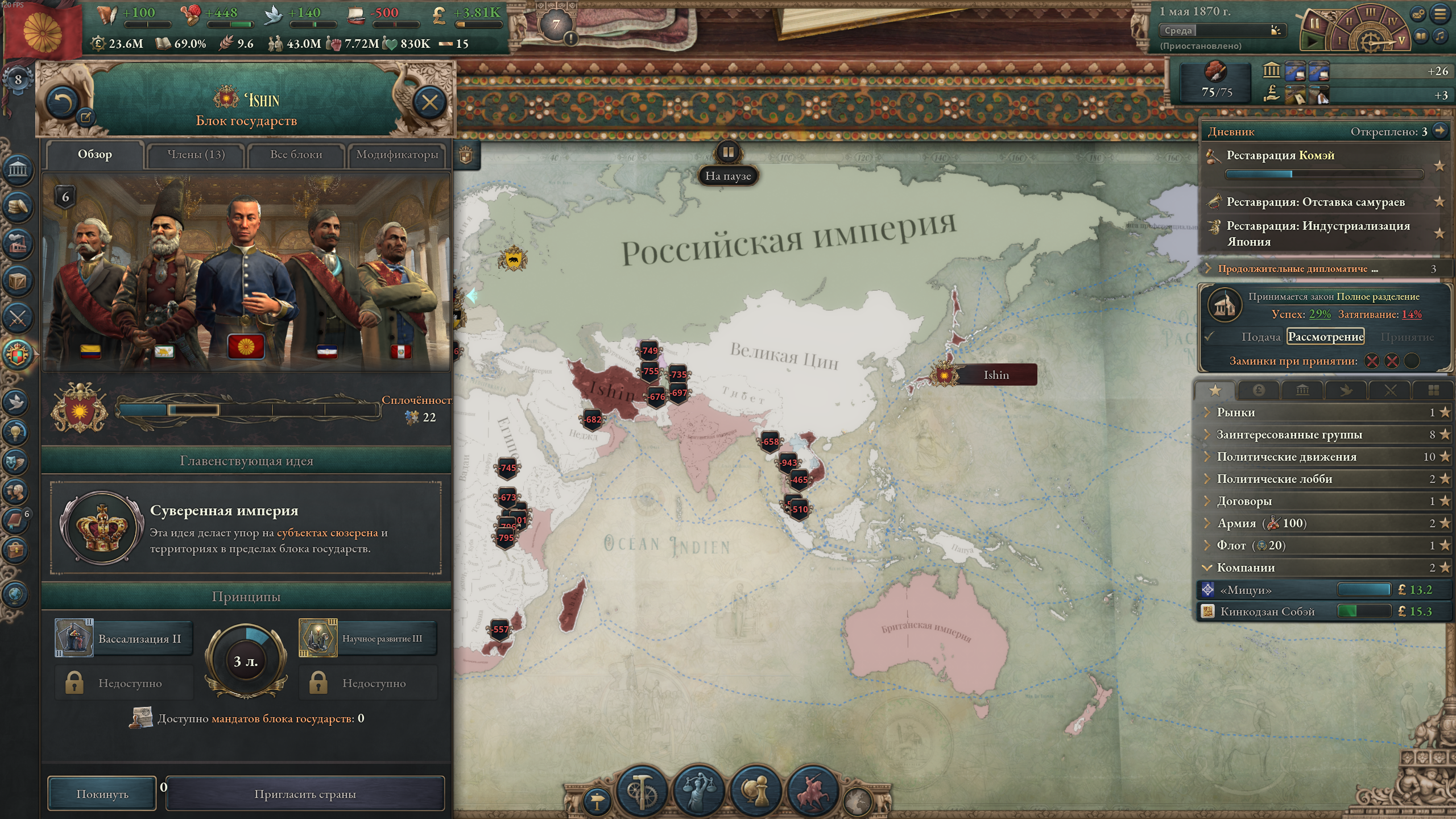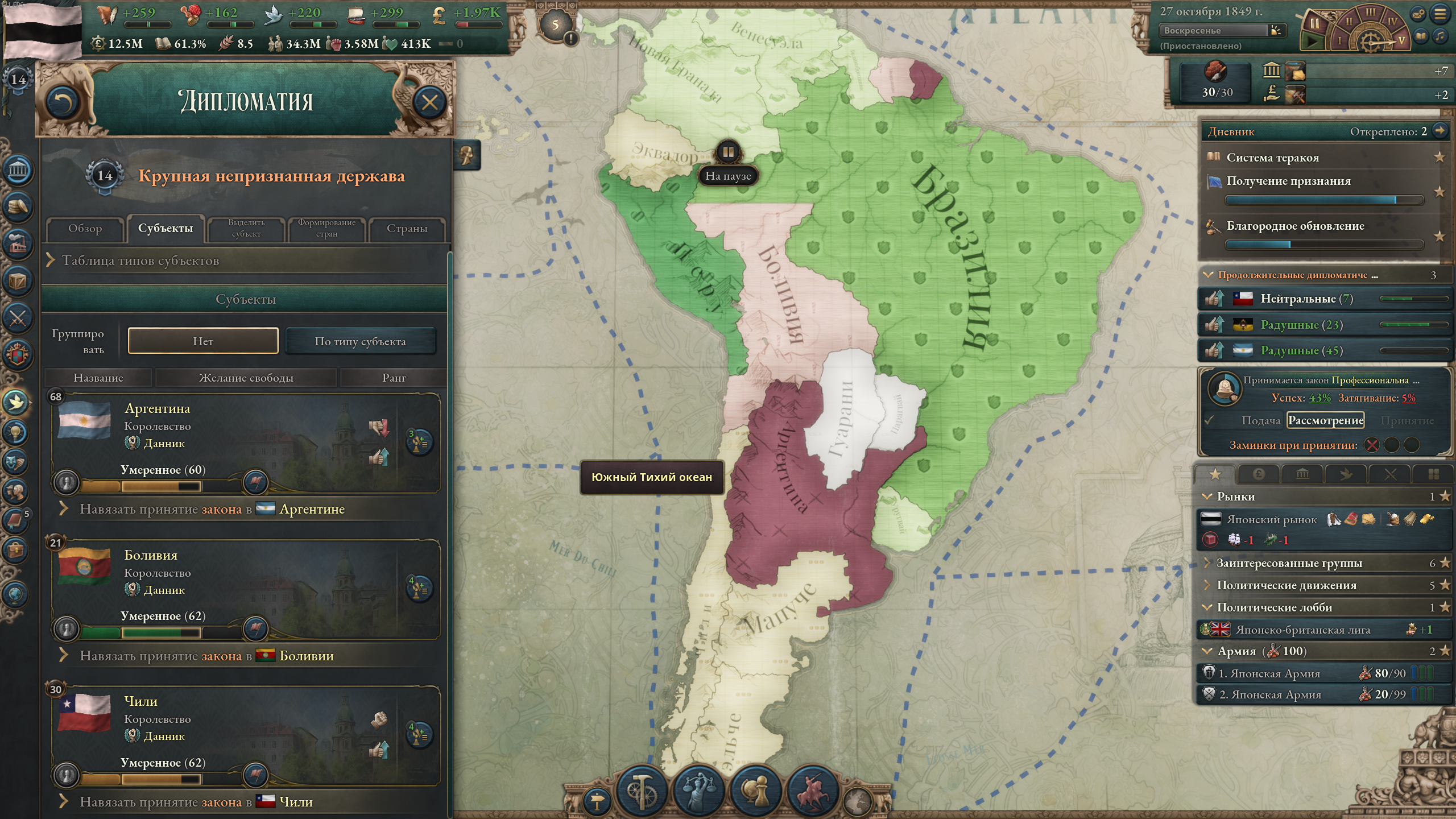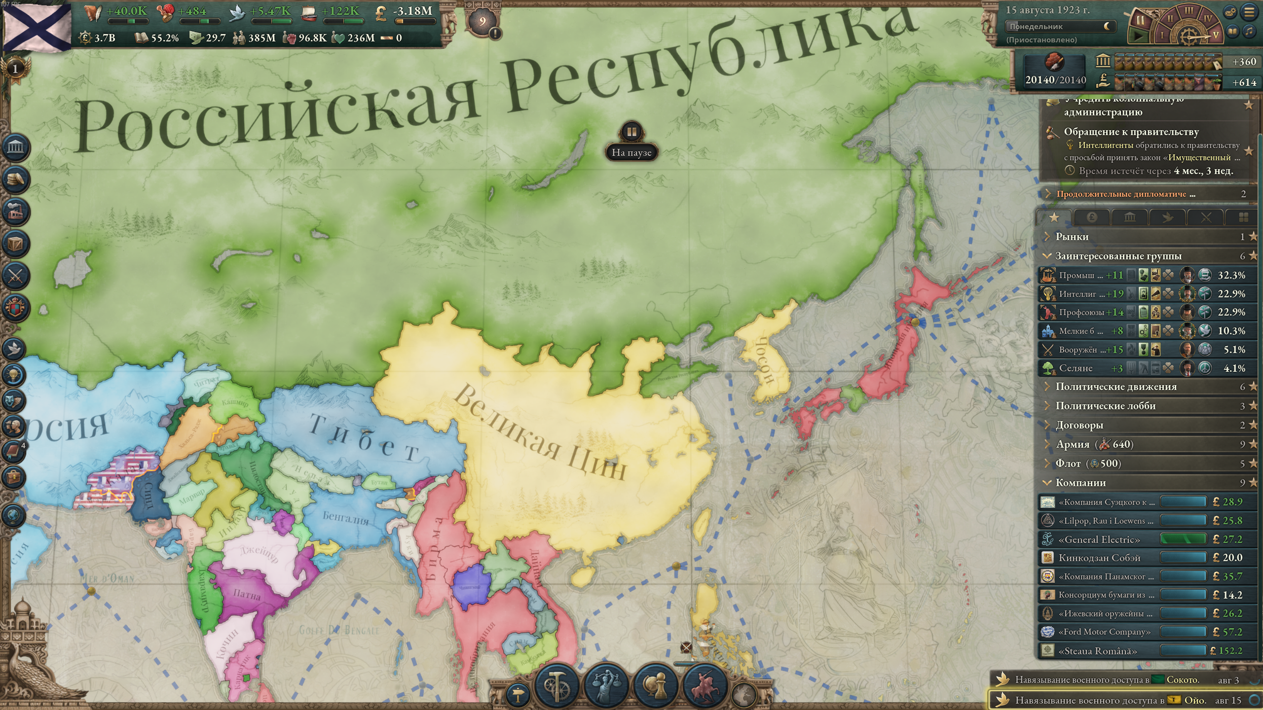 >>50197929 Какого еще влияния в 1838 г.? Нет, просто объявил войну по причине "сделать данником", добавлял все дополнительные цели типа унижения и торговых привилегий, а под конец мобилизовал войска — все сдались. Пока что девять лохов струсили и сдались, буду целиться в Сиам и Дайнам.