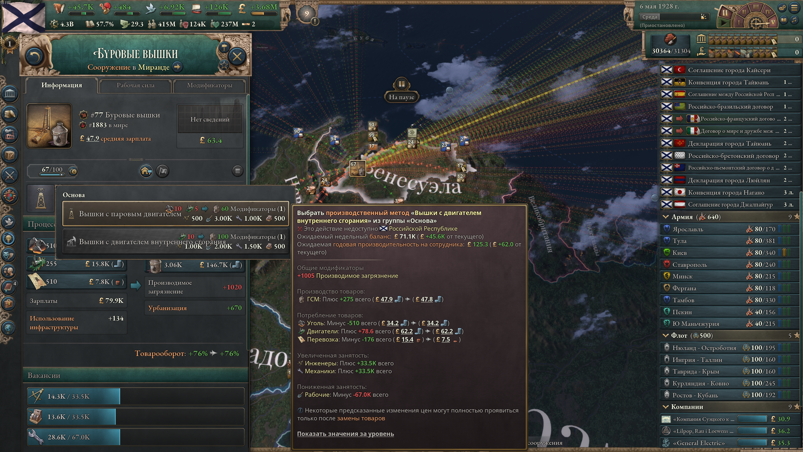 >>50189337 Я их поздно выделил. У них есть все технологии. Вобще я ждал открытия нефти, чтобы основать Бра нобель, а для этого нужно владеть Баку. Потом отпустил. У Закавказья кстати удельный ввп доходил до 35, и не опускался ниже 21. И 85% ввп в Баку. Думаю если сделать город-государство Баку, там и 50 было бы.
