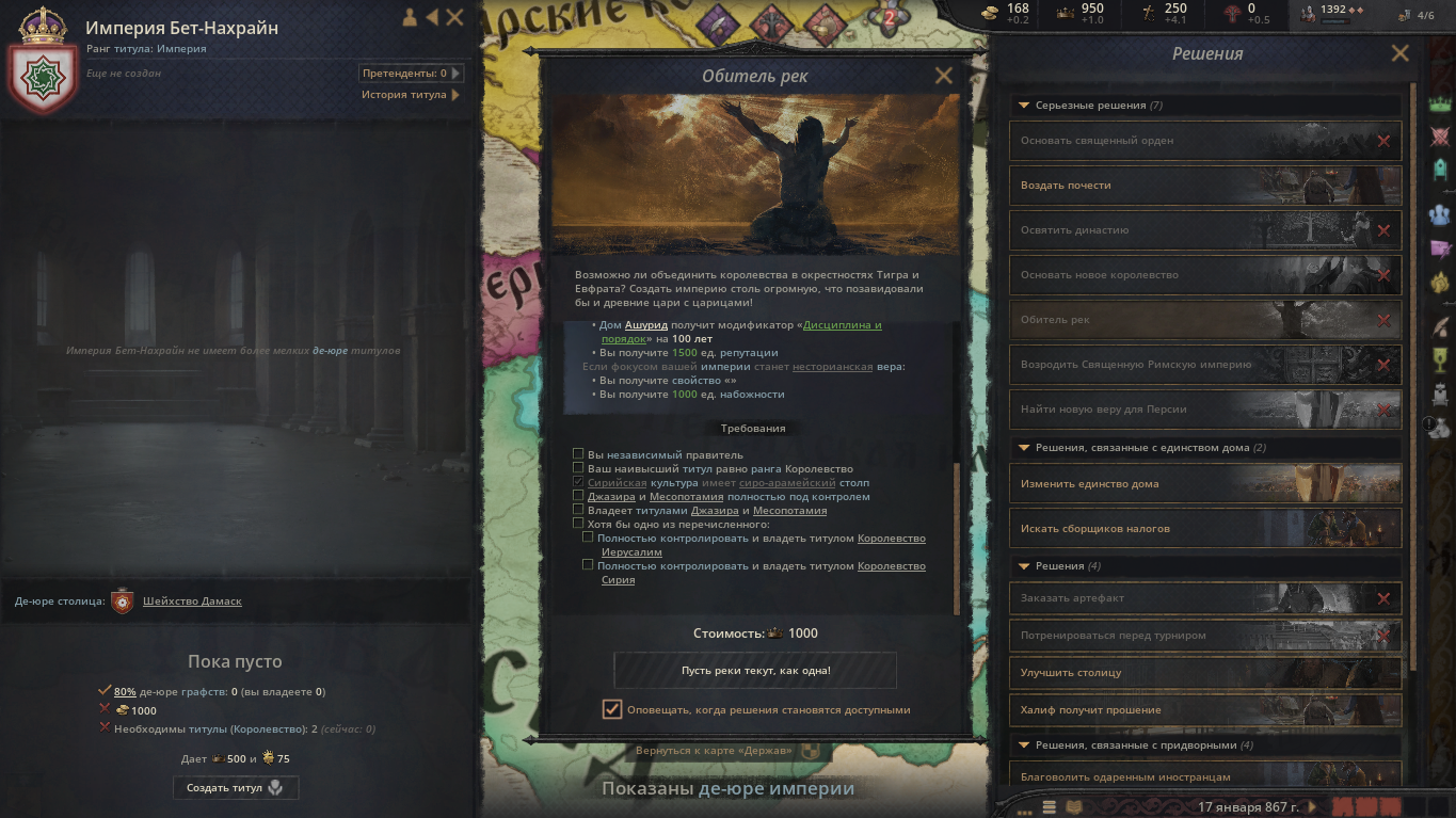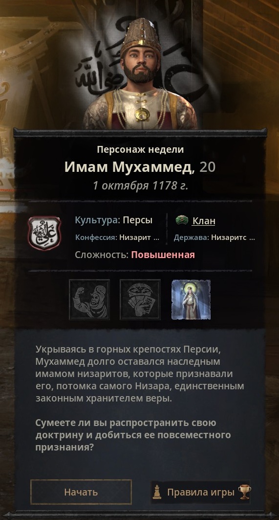 Кто нибудь проходил ивент на воссоздание Ассирии? Это просто пиздец какие начальные условия, земли с ассирийской культурой получаешь только за вассала Аббасидов, халиф и другие вассалы ненавидят тупо потому что я несторианин и халиф еще сразу начинает обращать провинции в ислам, а из возможных союзников через брак только негры-копты в эфиопии, да и в начальной дате сразу восстание где мои провинции осаждают. И при этом мне нужно мало того что сохранить веру так еще и каким то образом подчинить 3 королевства - Джазиру, Мессопотамию и Сирию/Иерусалим. По моему даже армянскую империю за принца Ашота было легче вернуть.