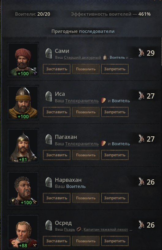 >>50203372 А чё, у кланнеров нет такой опции? Варвары. Тогда следи за авторитетом короны в калифате, если он поднимется, то кал ифф сможет сажать и отнимать титулы у неверных вассалов без тирании. >>50203514 Я про независимых правителей со слабыми армиями. Это был совет на случай если тебя сделают безземельным и тебе нужно будет завоевывать земли где-то еще, пока тебя не пидорнули - не бери в голову.