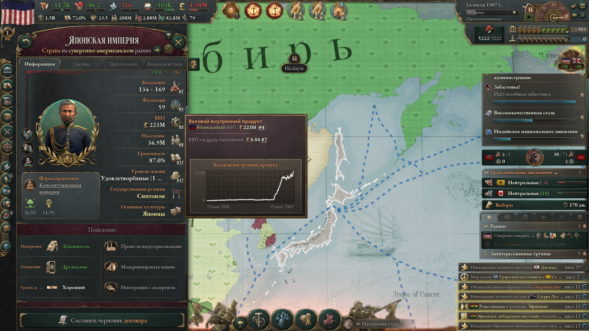 >>50202166 Ну я прежде никогда не играл за Японию, и, как оказалось, это душноватая страна. Десять лет воевать вообще нельзя по квесту. Экономика тяжеловато раскачивается.