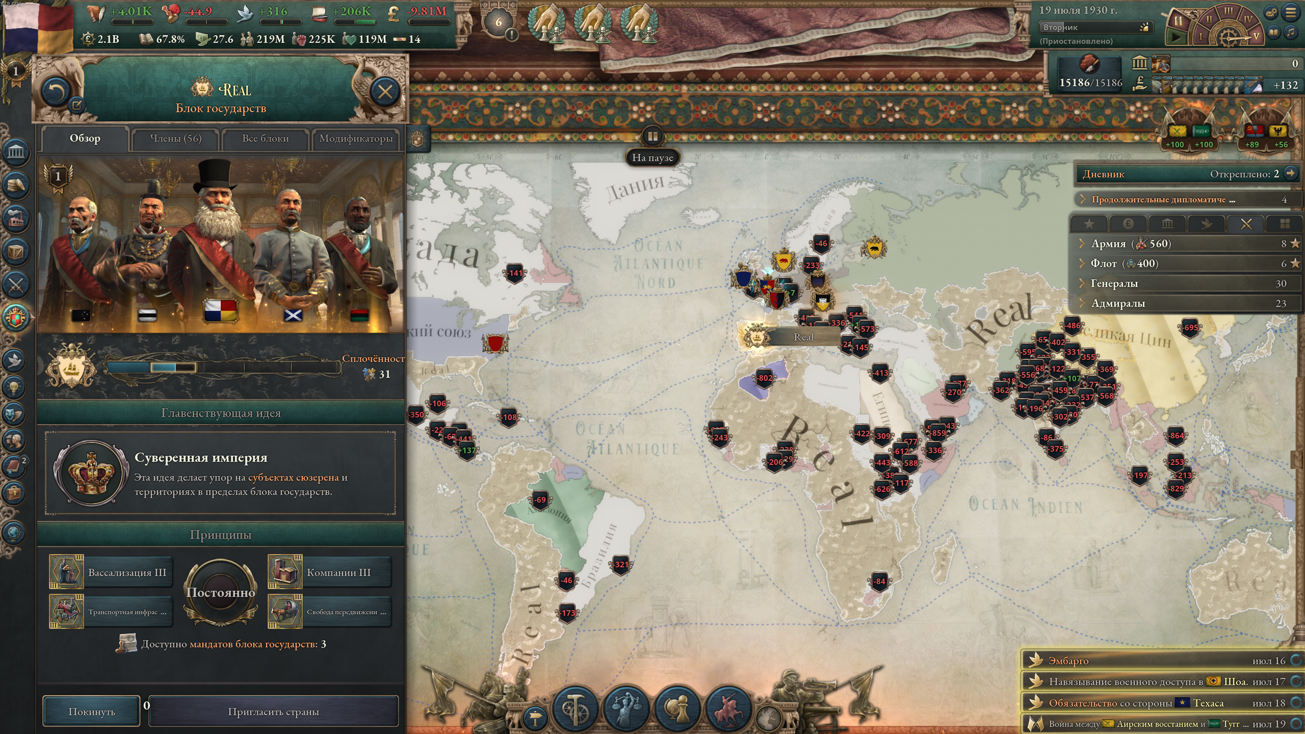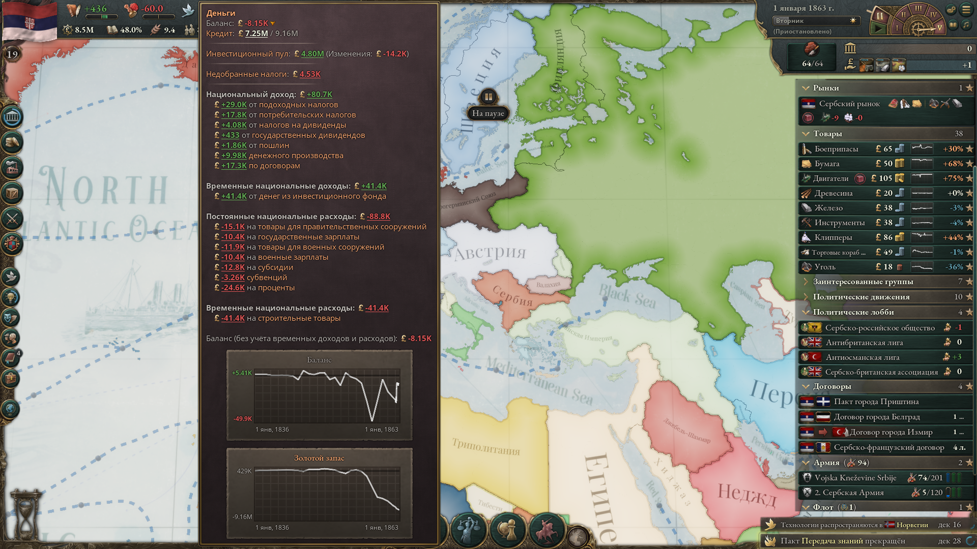 Аноны, помните я когда то давно предлагал при помощи конвертера сделать государство на всю планету в Вике 3 и проверить, как будет работать экономика? Итак, World Government. Но только на всю Евразию+Африку+Японию+Британские о-ва+Индонезия+Мадагаскар. Как нахуй? А просто КОГДА РУССКИЙ КНЯЗЬ ВЛАДИМИР КРАСНОЕ СОЛНЫШКО ХОТЕЛ ПОДЧИНИТЬ ЦАРЬГРАД ЯЩЕРЫ ПОДСУНУЛИ ЕМУ НЕ ТЕ КАРТЫ, НО ОН НЕ РАСТЕРЯЛСЯ И ОТКРЫЛ ОЗЕРО БАЙКАЛ, ИСПИВ ВОДИЦЫ ИЗ КОТОРОГО ОН СТАЛ СВЕРХЧЕЛОВЕКОМ И ПРОЗРЕЛ - ОН ОБЪЕЗДИЛ ВЕСЬ СВЕТ, ПРЕДЛАГАЛ КАЖДОМУ КНЯЗЬКУ, ВОЖДЮ, КОРОЛЬКУ И ПРОЧИМ ИМПЕРАТАРАМ БАТЛ - СОРЕВНОВАНИЯ ПО ИГРЕ НА ГИТАРЕ, СКОРОСТНОМУ ПОЕДАНИЮ БЛИНОВ И СТРЕЛЬБУ СПЕРМОЙ НА ДЛИНУ 7,5 ВЁРСТ. ОН ПОБЕЖДАЛ ВЕЗДЕ И НА ОСНОВАНИИ ЭТОГО ЗАБИРАЛ СЕБЕ ВСЕ ЗЕМЛИ, А ЕСЛИ ЕМУ ОТКАЗЫВАЛИ В БАТЛЕ, ОН БРАЛ СВОЁ СИЛОЙ, ЛИЧНО СОКРУШАЯ ПОЛЧИЩА ВРАГОВ ХУЕМ ПО ЛБАМ. ОН ВЗЯЛ ВЕСЬ СВЕТ, КРОМЕ АМЕРИКИ И АВСТРАЛИИ, ИХ ЕЩЁ НЕ ОТКРЫЛИ ПЛЮС ОН НЕ ХОТЕЛ ЗАБИРАТЬ У ПОТОМКОВ ВОЗМОЖНОСТЬ СОВЕРШАТЬ ВЕЛИКИЕ ДЕЛА И ОТКРЫТИЯ. Конвертер, в принципе, сработал, но с нюансом. Во-первых, в африке часть территорий не мои, а децентрализованных племён, но и черт бы с ними. Во-вторых, у меня почти нет включенных областей, только те, где живут восточные славяне. В-третьих, у меня сразу во некоторых провинциях и голод и дефицит. И бюрократии не хватает...