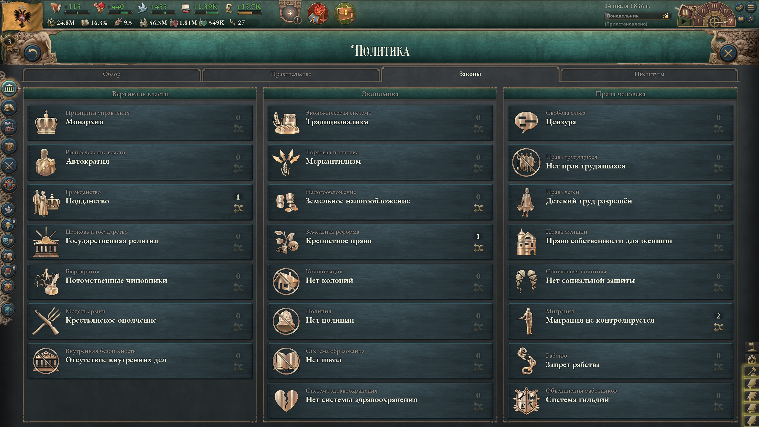>>50204283 Ну свободы я взял ради распространения технологий, потом переделал бы. А без баффов от религии рождаемость вообще замедлится. Хз, представь, что там не католичество, а аненербе.