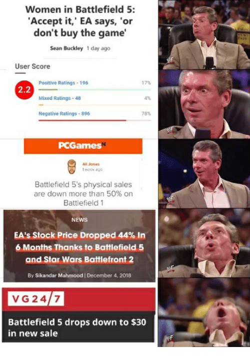 >>50241821 А вон даже мем нашел на эту тему. 6ка вряд ли провалится в продажах, судя по хайпу говноедов и скидок полгода-год точно не будет, или 10% на распродаже в стиме онли.