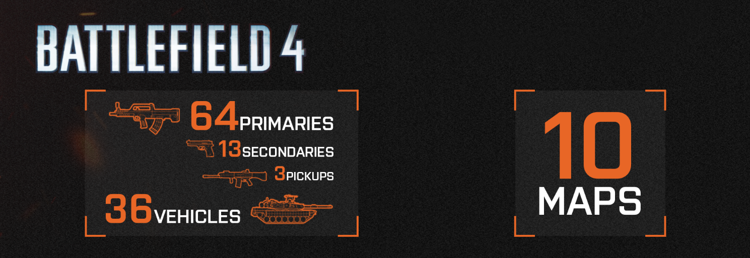 - Levolution - Система погодных условий - Настроить оружие во время боя - Плавучие средства - Отбрасывание гранат - Режим командира - Продуманный UX/UI - Браузер серверов - Большие карты - SQUAD REINFORCEMENT - Операции - Фортификации - Баттлог - Редактор эмблем - Разные анимации - Живая карта - Режим титанов - Тепловизоры - Артиллерия