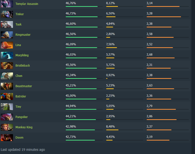 помню мне друг дал на аккаунте поиграть с властелином, было наверное в году 2021, тогда отыграл со статистикой 3-2. все на саппортах.