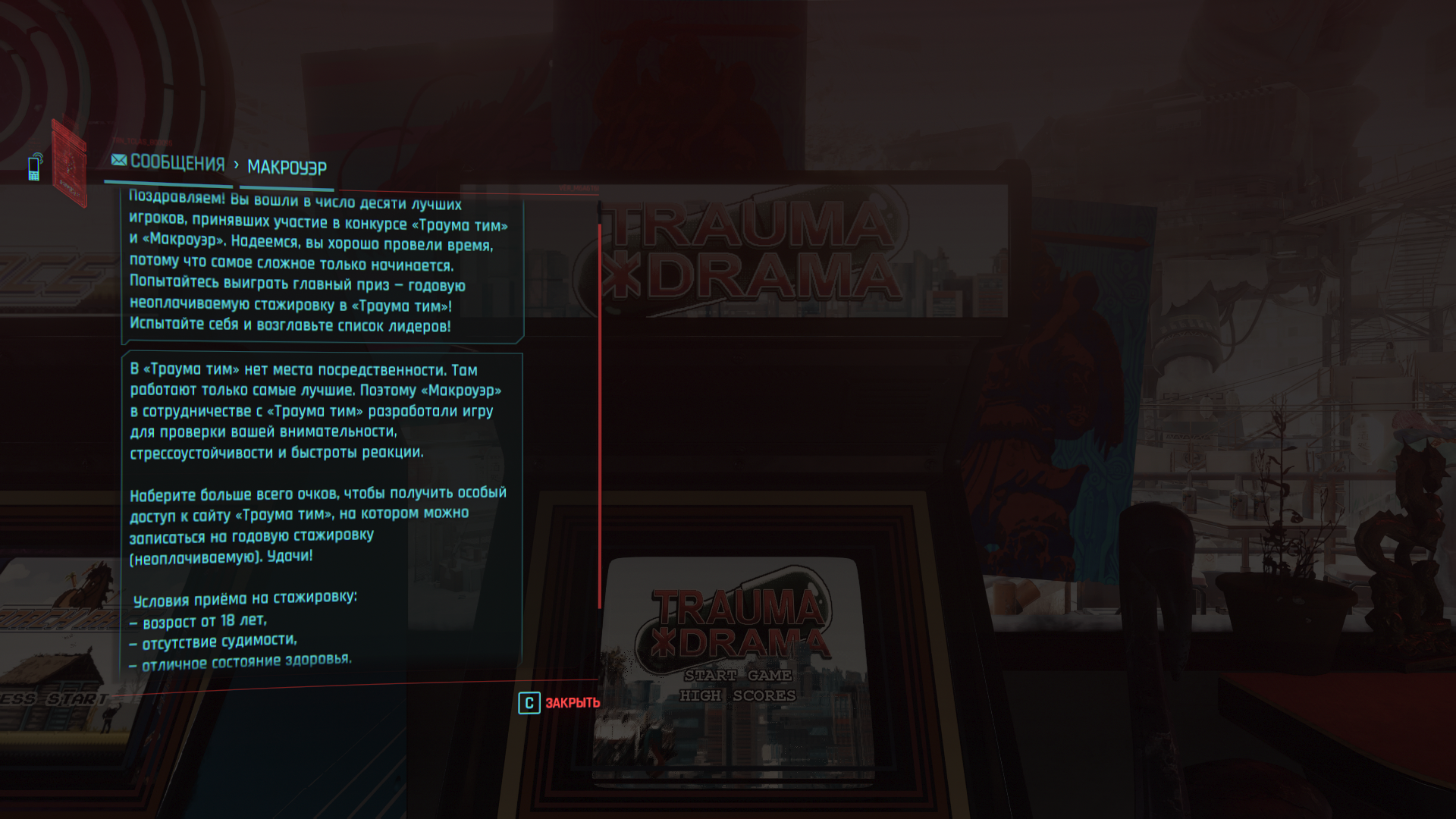 >>50262411 Игровой условностью это было бы, присутствуй в игре тайм-скип, или Жока/его бывшая представляли бы собой бога из машины для Ви. Зачем ты пытаешься вытереть обосранные польские штаны, зачем, мистер кибердрон? Когда есть обратный отсчет в кол-ве двух недель, который ни на что не влияет, и охуительная история про страшную-престрашную тайную технологию арасаки, которая находится у Ви, но на это всем абсолютно похуй?