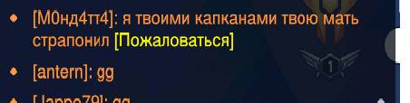 — если ты вежливо просишь меня свичнуть героя, то получаешь блок + репорт, если невежливо, то ещё и эвейд в придачу; — если ты просишь меня присоединиться к войсу, то получаешь блок + репорт; — если ты написал гг в конце матча, то получаешь блок + репорт; — если ты в принципе написало что-то, что мне не понравилось, то получаешь блок + репорт, думай дважды, чепуха; — если мне не нравится, как ты играешь, то получаешь репорт + эвейд; — если ты в моей команде и у тебя уровень <100, и ты не смурф (т.е. имеешь кд <4 в стате или не убиваешь пол команды врага в замесе), то получаешь репорт + эвейд; — если ты решило выгулять своего дружочка-лоускила в пати, то оба получаете репорты, а чмоха с самым высоким эло получает эвейд; Хочу заметить, что репорты складываются, то есть если ты плохо играешь и бухтишь в чат, то получишь два разных репорта, а так же получишь ещё копию этих репортов, если попадёшься со мной в следующей игре, даже если окажешься в противоположной команде.